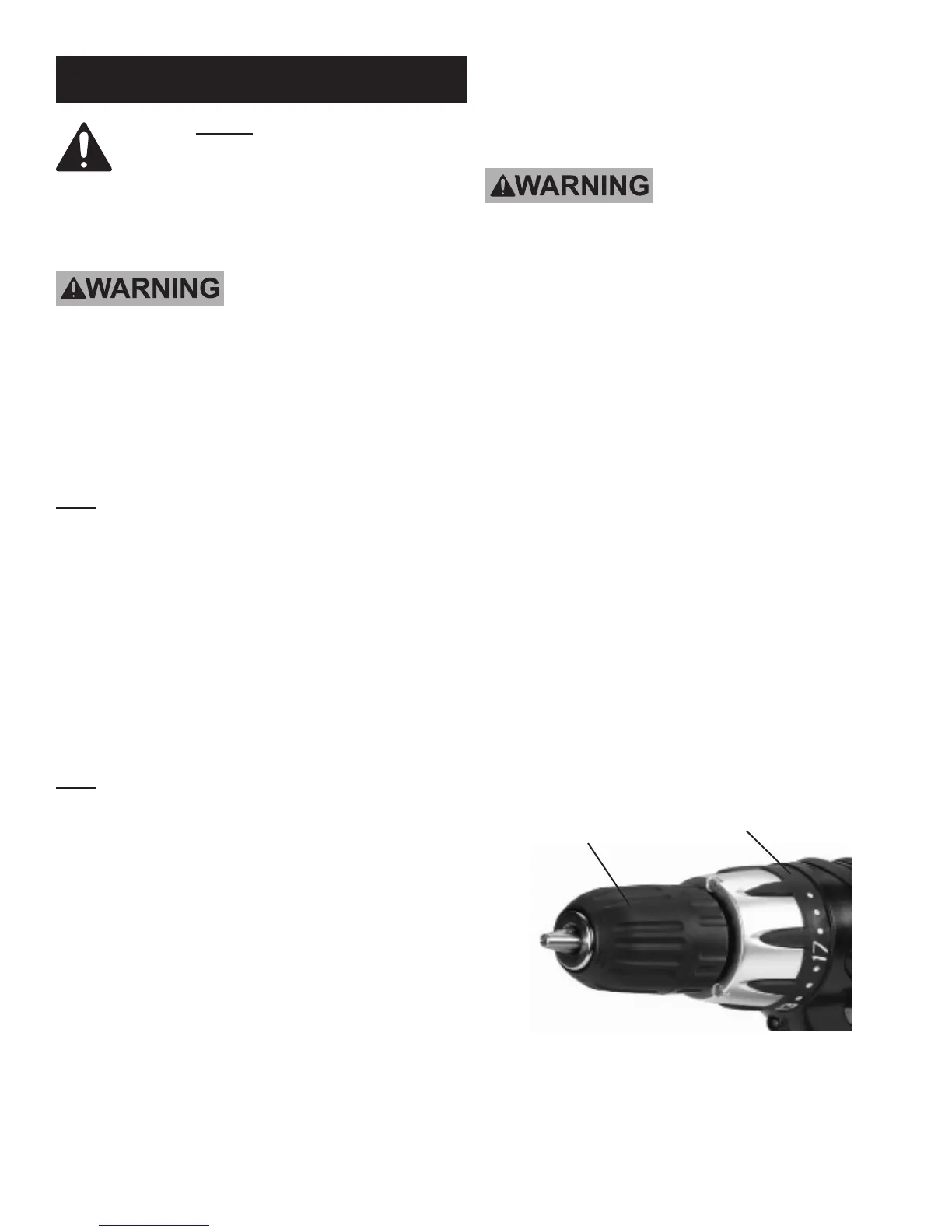 drill is in its “OFF” position, the Battery Pack is