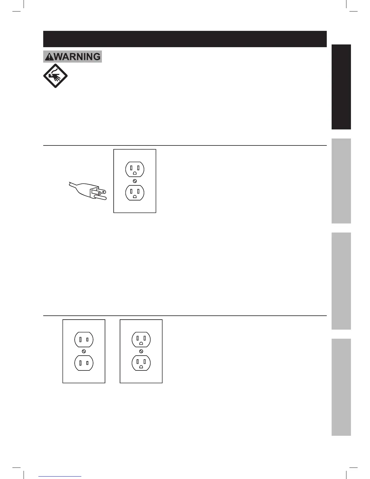 facility before use. If the plug will not fit the outlet, have a proper outlet installed by a qualified electrician.
