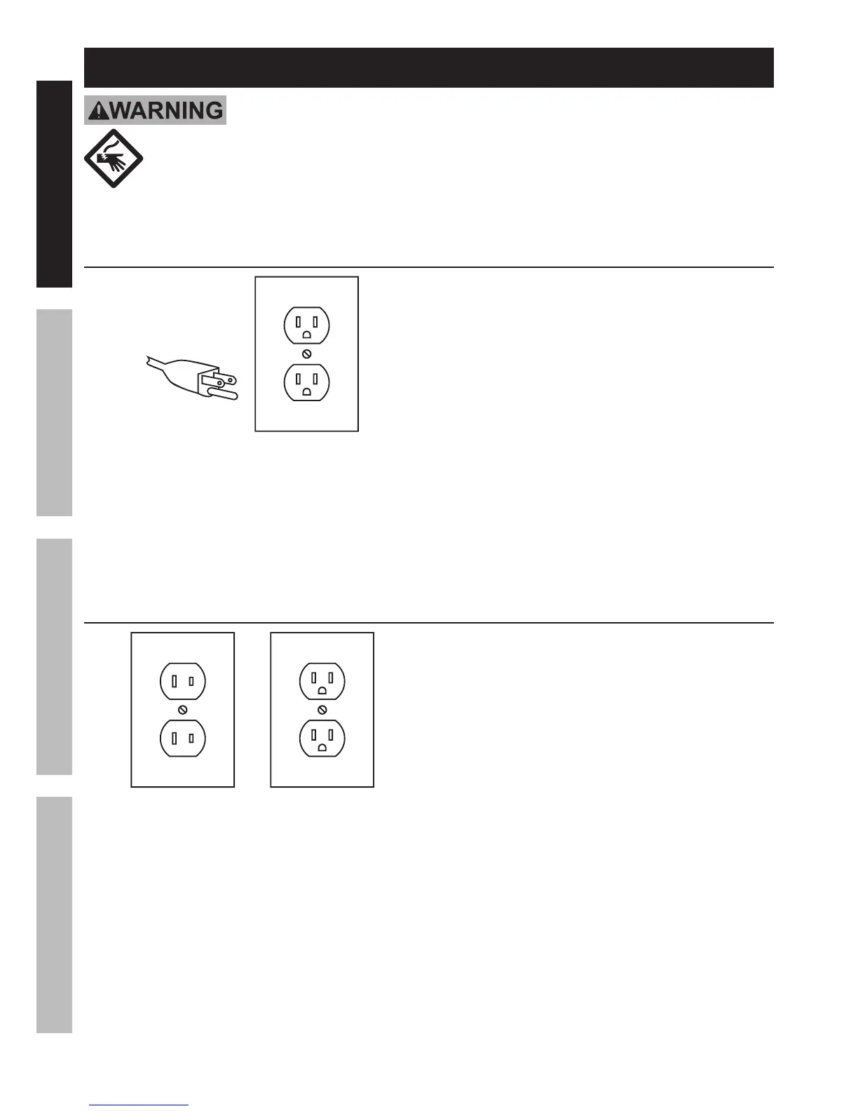 facility before use. If the plug will not fit the outlet, have a proper outlet installed by a qualified electrician.
