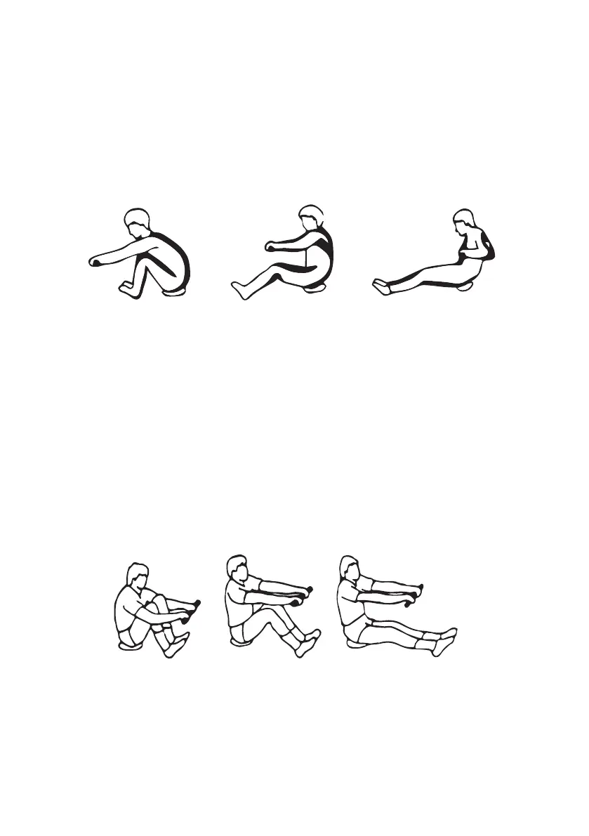 your back straight and arms outstretched, bend your legs until the row arms are in