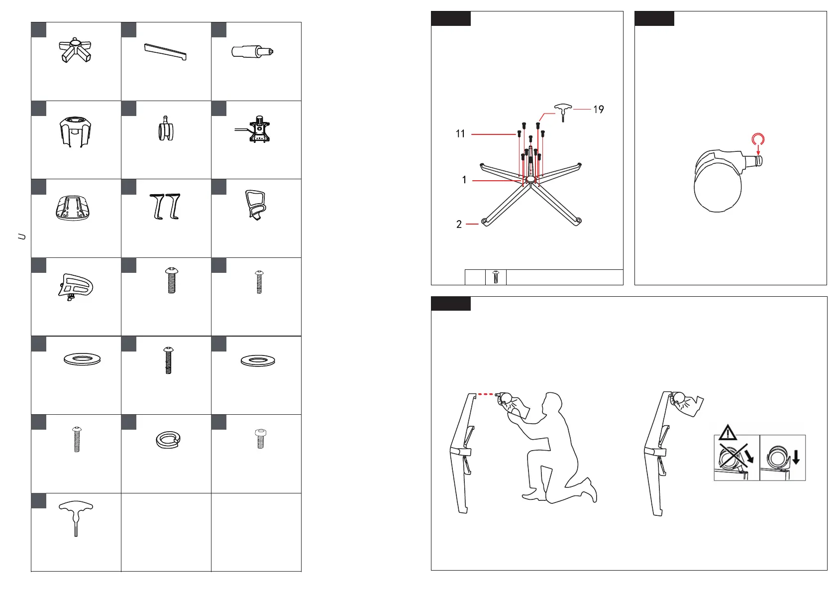 Insert a little, make sure the castor precisely aligned with base leg hole