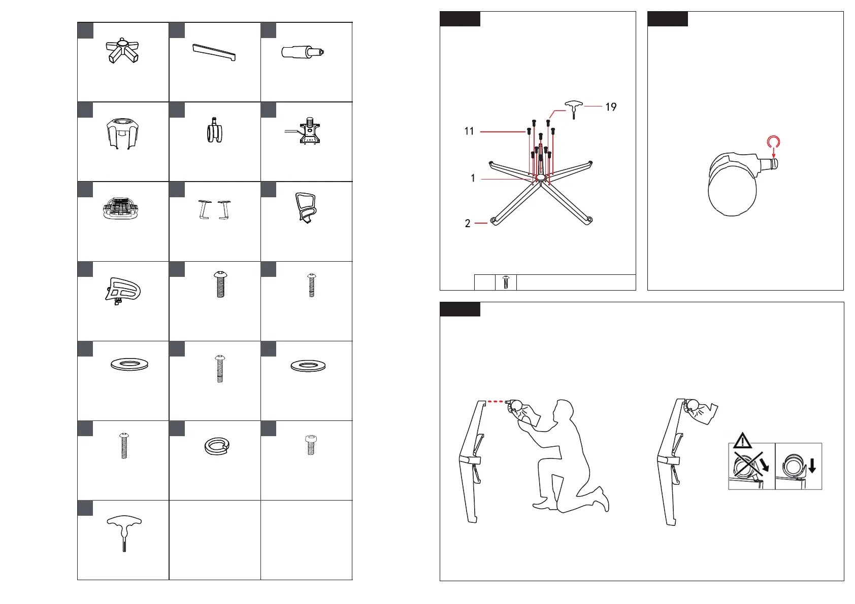 Insert a little, make sure the castor precisely aligned with base leg hole