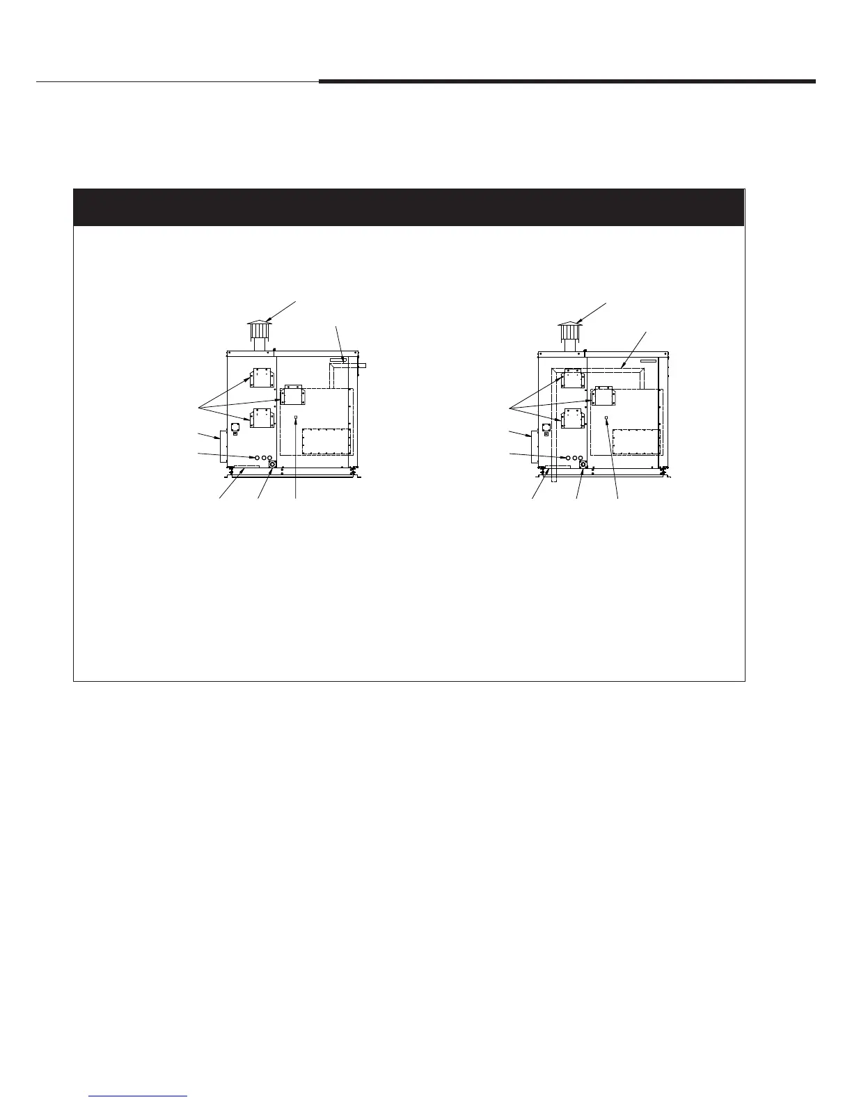 for connecting to steam dispersion unit piping. The optional internal steam distribution configuration routes steam within the outdoor enclosure and down