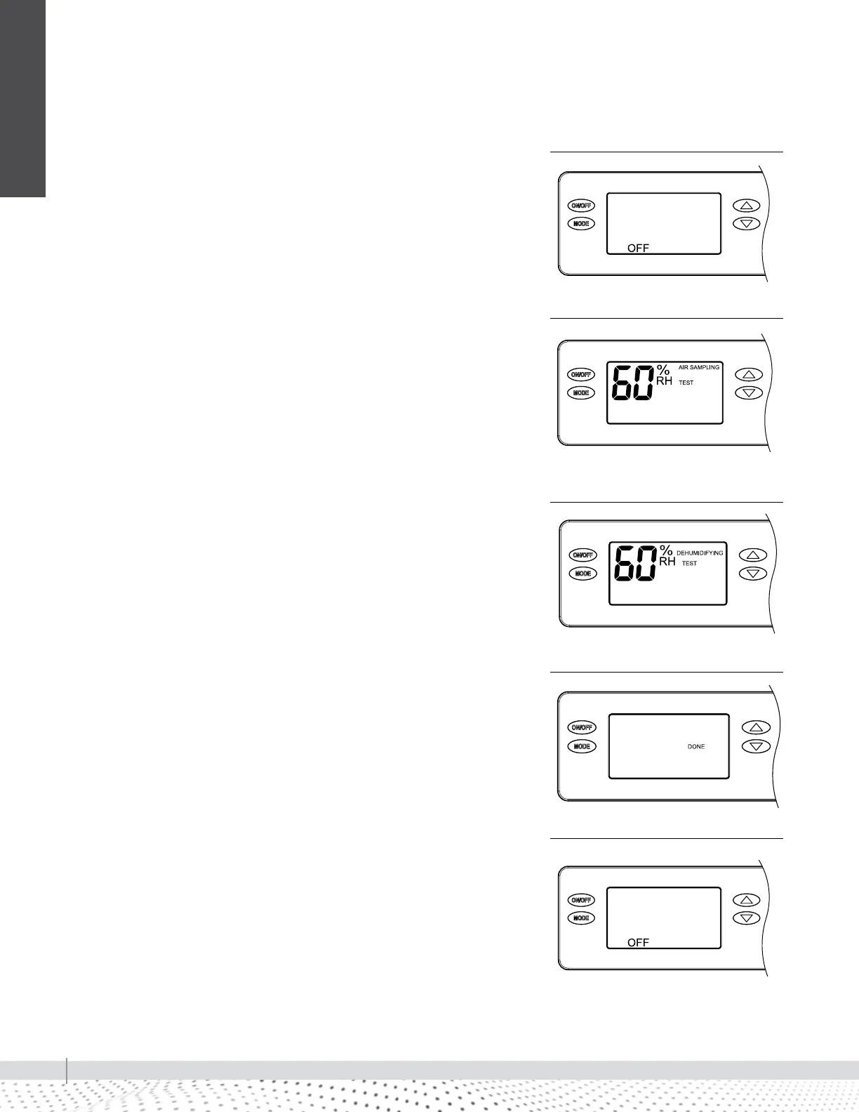 is pressed during test mode, the dehumidifier will exit Installer Test Mode and