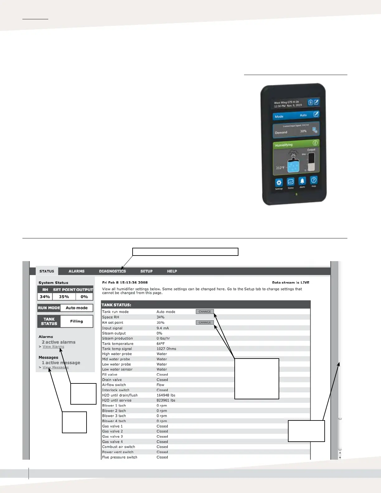 FIGURE 36-2: USING THE VAPOR-LOGIC WEB INTERFACE (STATUS SCREEN SHOWN)