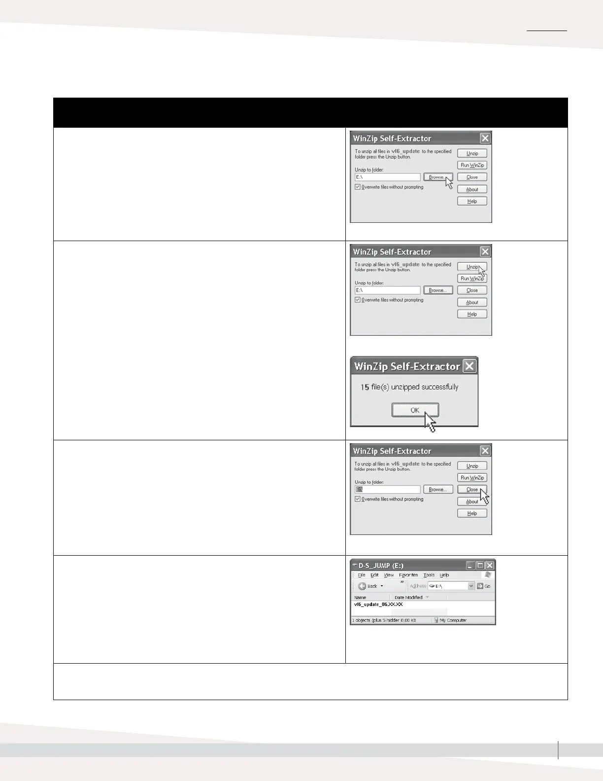 7. Click the Unzip button in the WinZip Self-Extractor window.