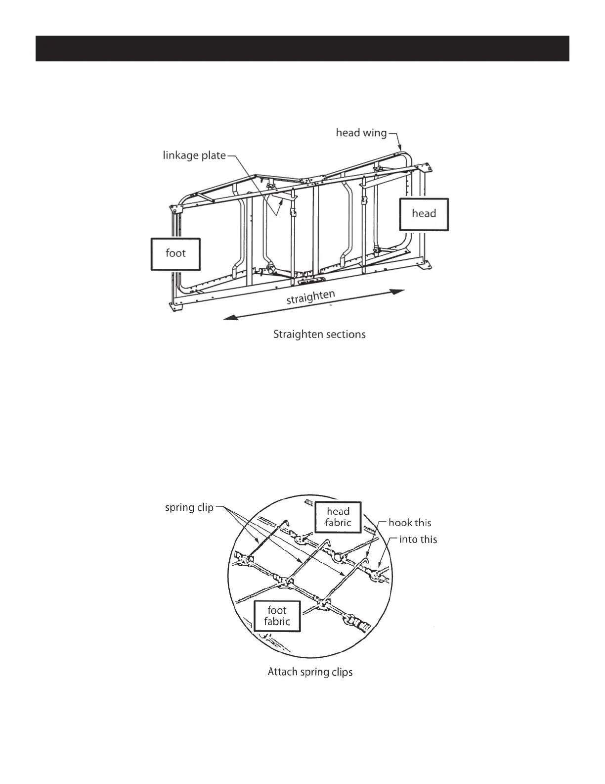 CAUTION: ENSURE THAT HEAD AND FOOT SECTIONS AND SPRING FABRIC