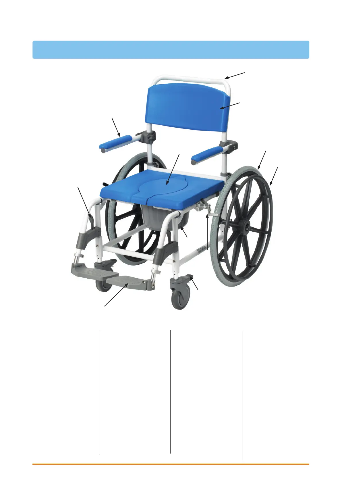 Teile des Dusch-Toilettenrollstuhls – Parts of Wheeled Commode –