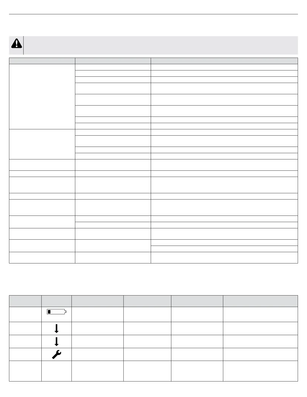 3. Battery depleted or defective battery. 3. Install charged battery or contact provider for replacement