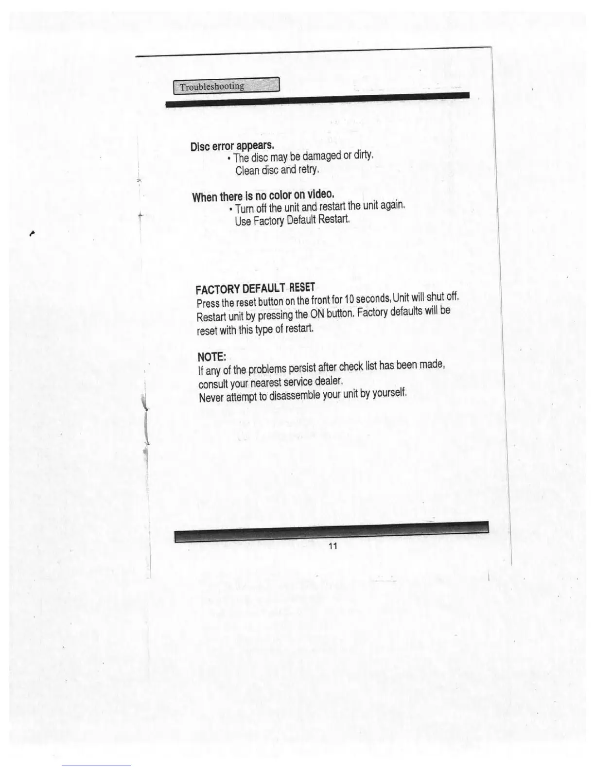 Drive EEDV06 - Disc Error Appears; Factory Default Reset
