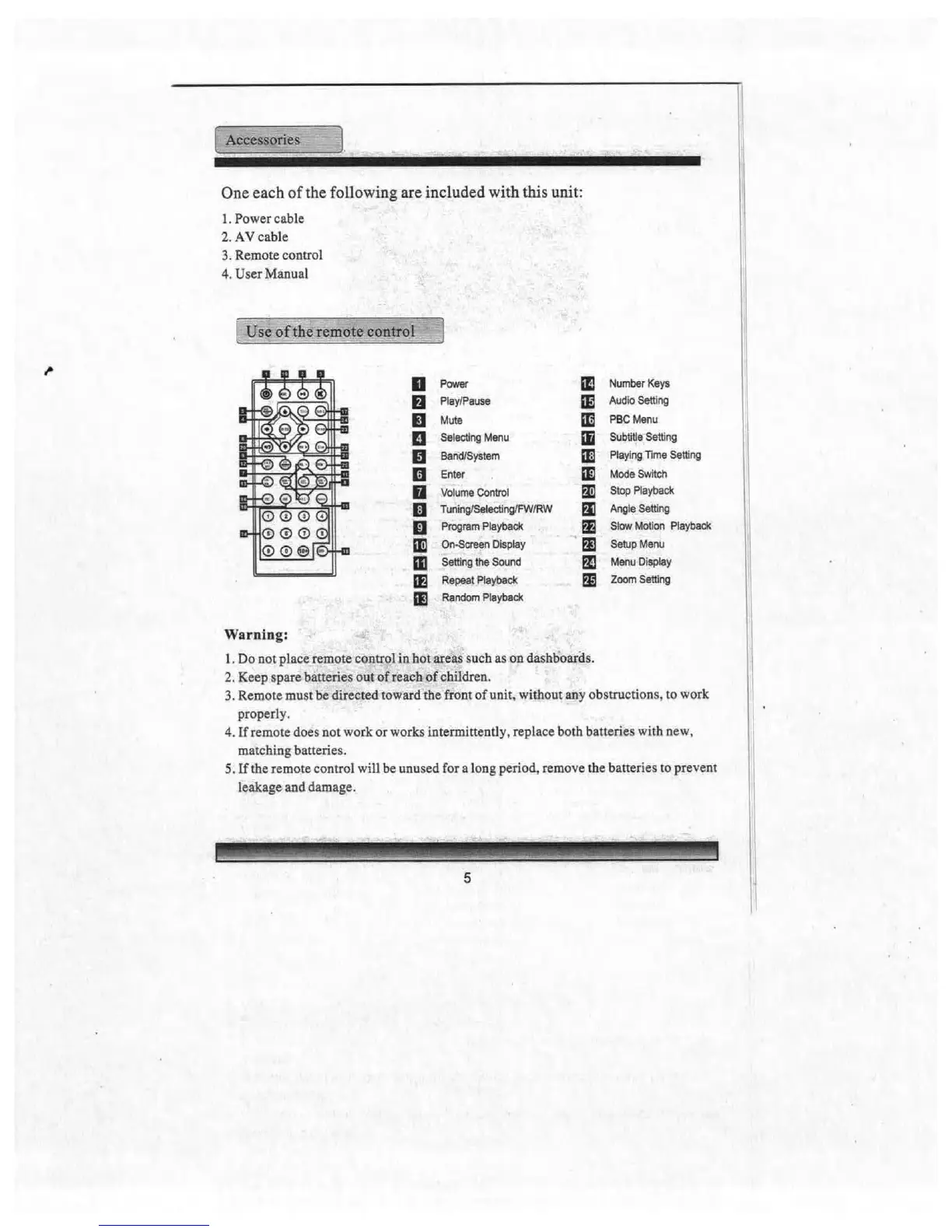 Drive EEDV06 - Accessories; Use of the Remote Control