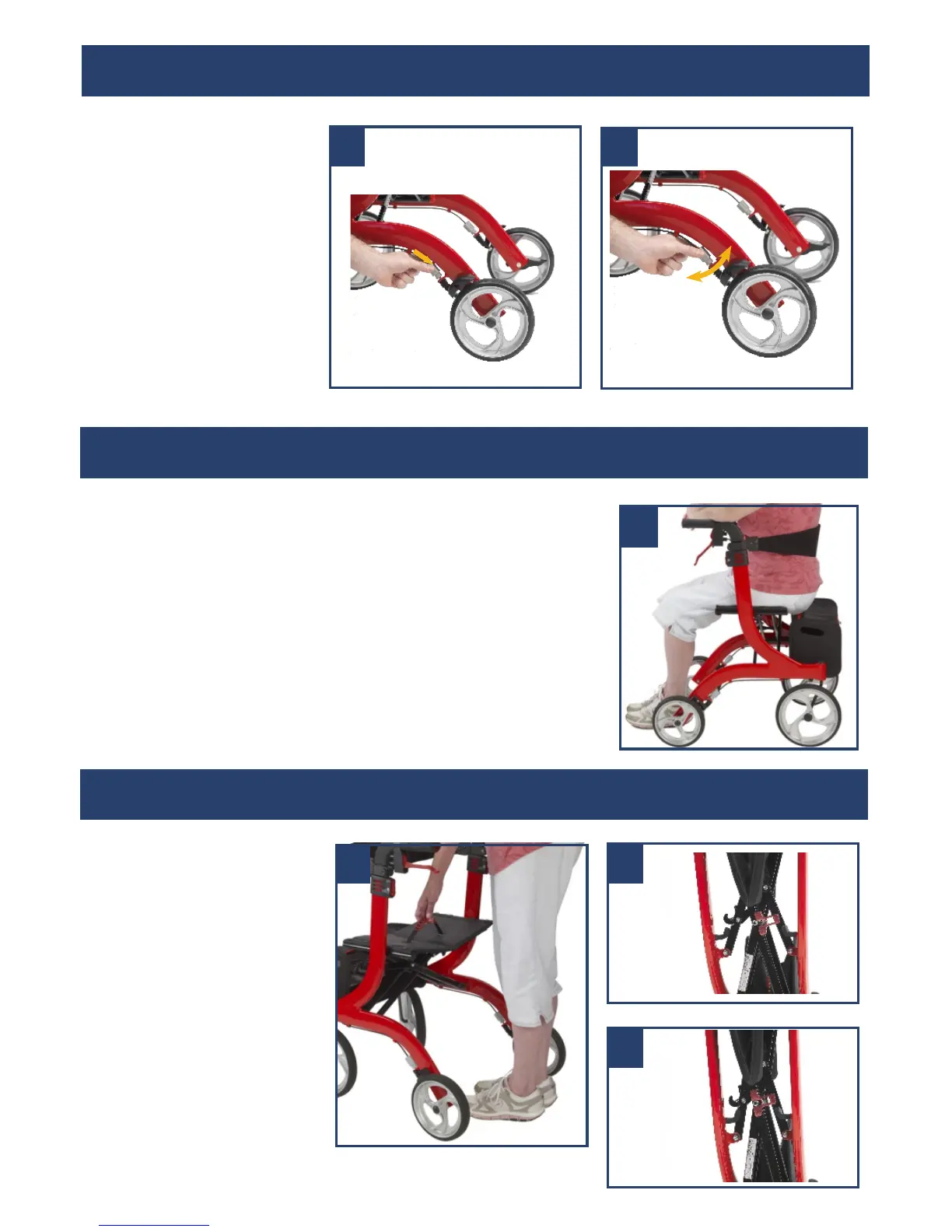 Drive Nitro RTL10266 - Rollator Operation; Adjustment of Brakes; Sitting Safely; Folding, Transport & Storage