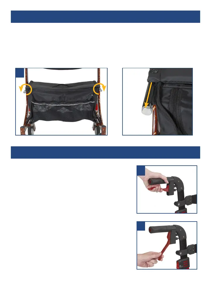 Pour retirer le sac, tournez vers l’extérieur les boutons situés sur le devant du cadre