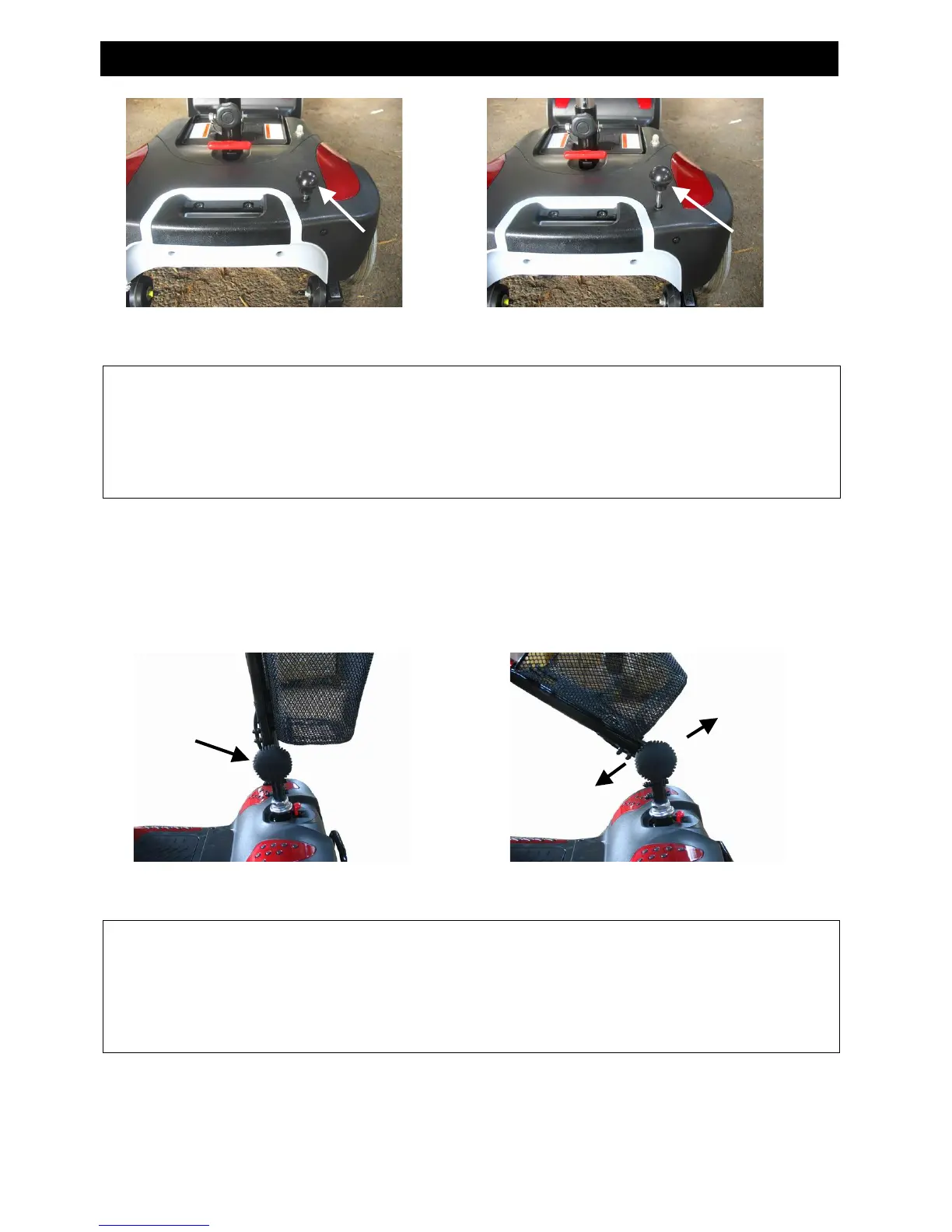 Before lifting or driving the scooter make certain the tiller adjustment knob is fully