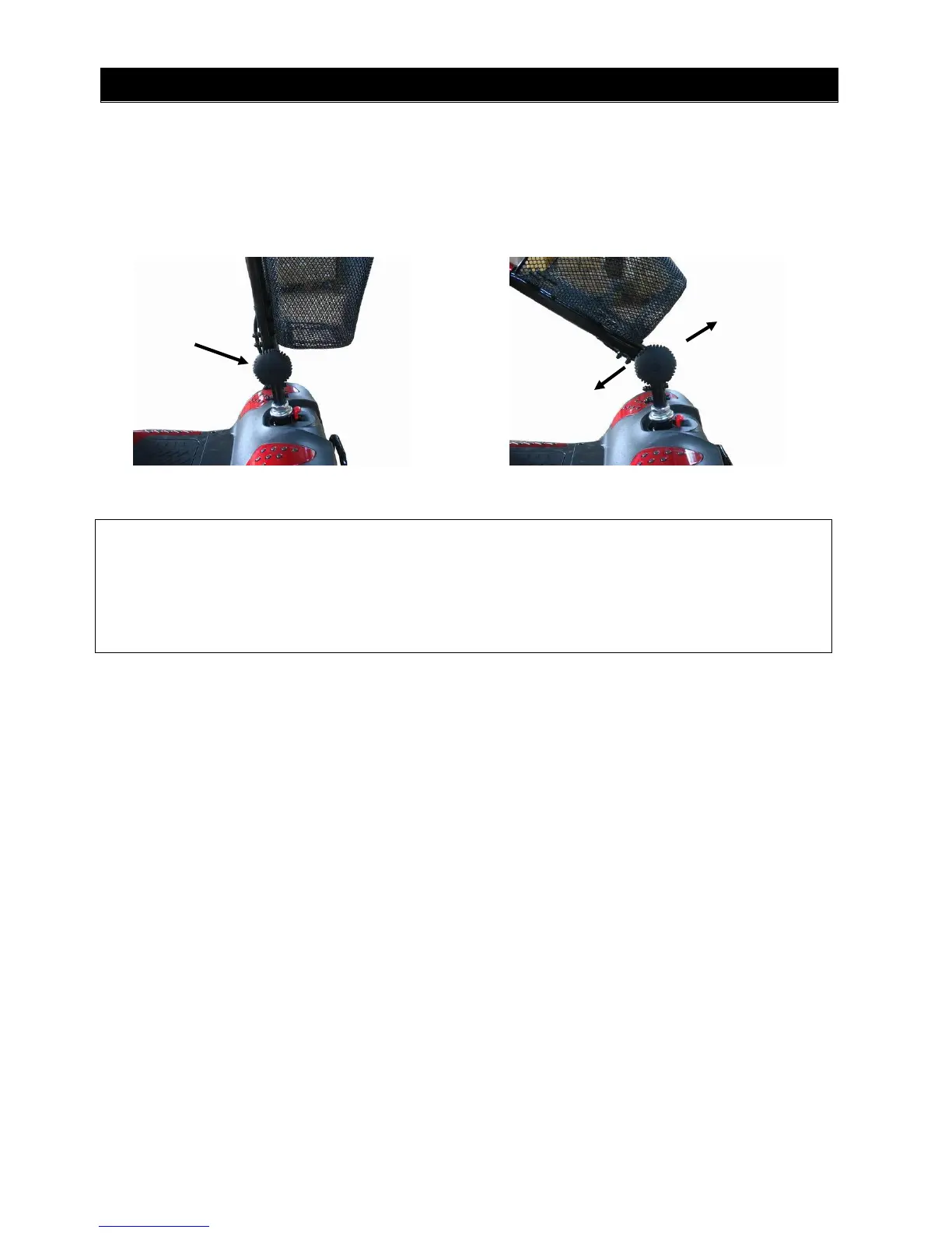 Before lifting or driving the scooter make certain the tiller adjustment knob is fully