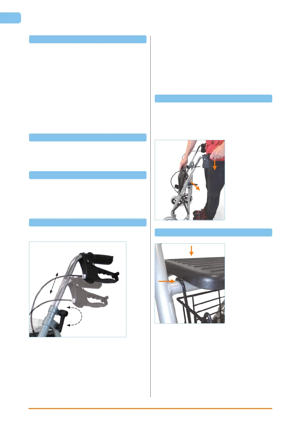 hinten gezogen wird bis Rollator auf vier Rädern steht.