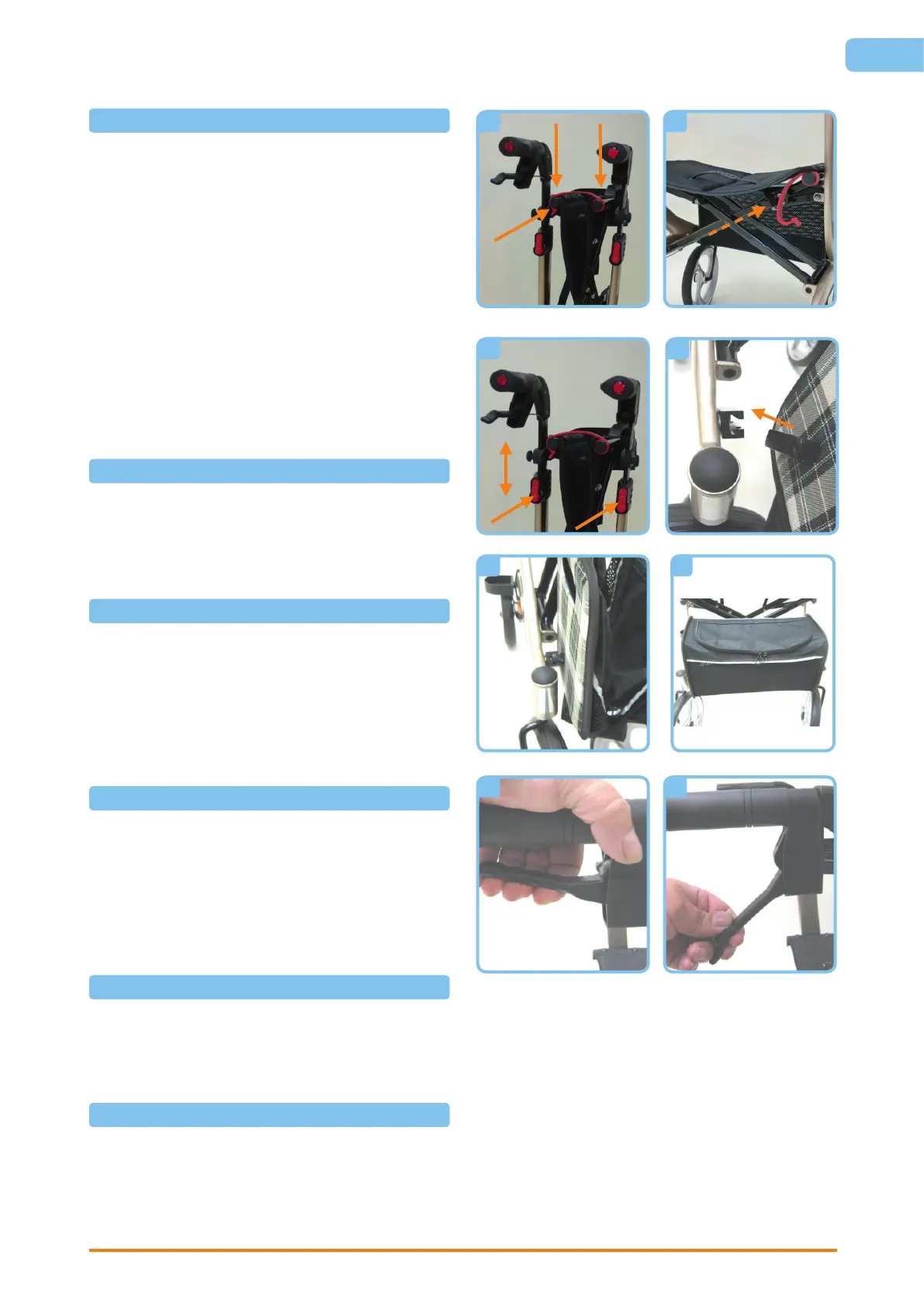 Rollator auf die Räder stellen. Öffnen Sie den roten