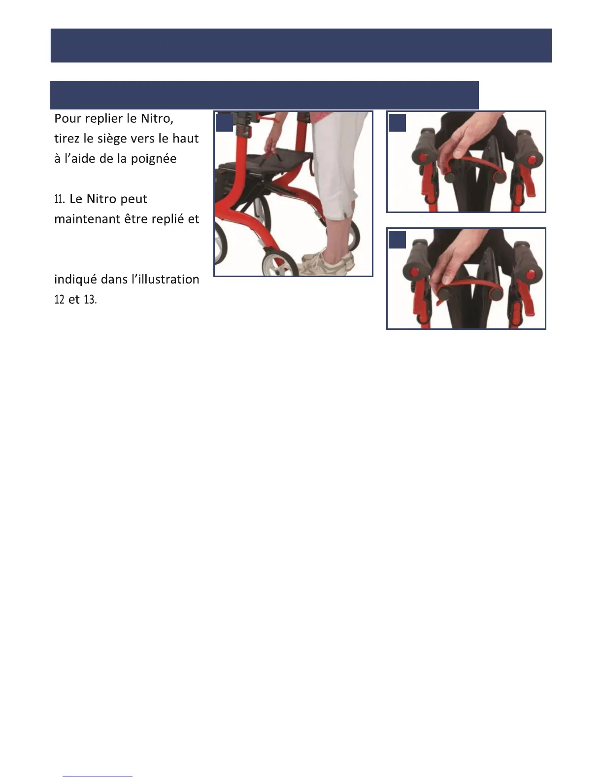 • Assurez-vous que l’ambulateur est complètement déployé, que le siège est bien