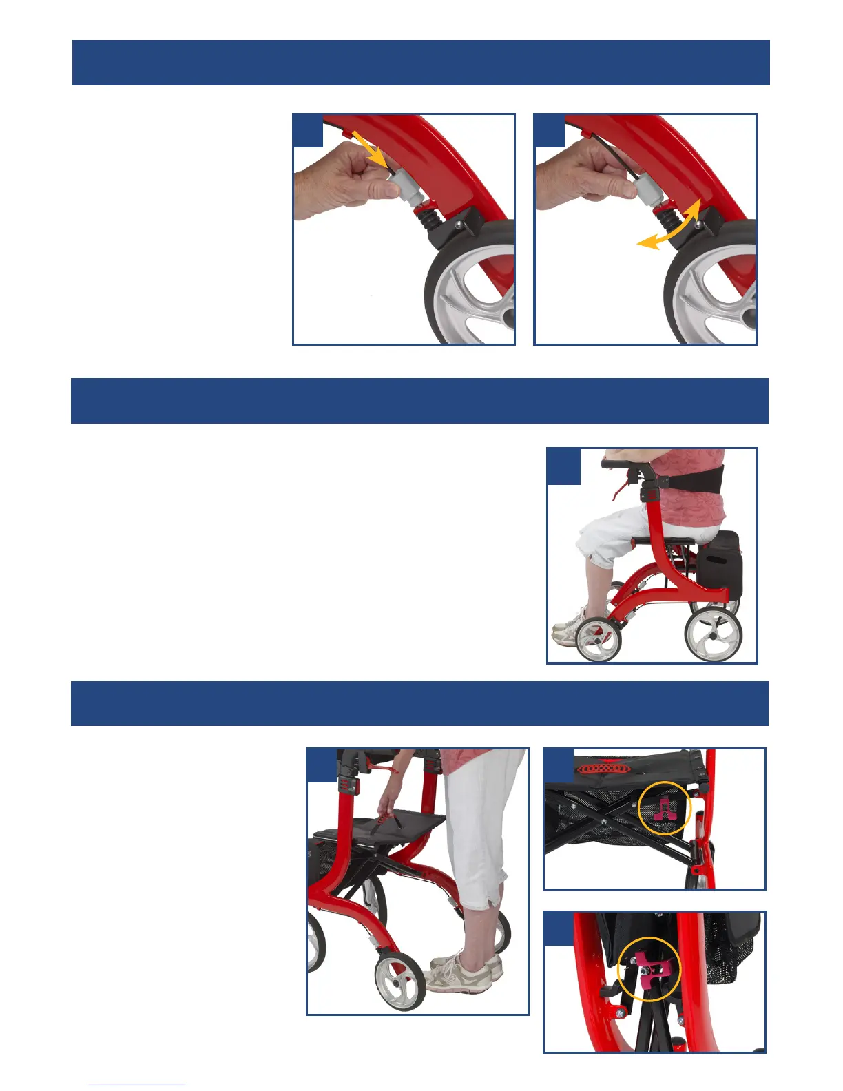 Rollator must stand and must not slip. Sit straight up