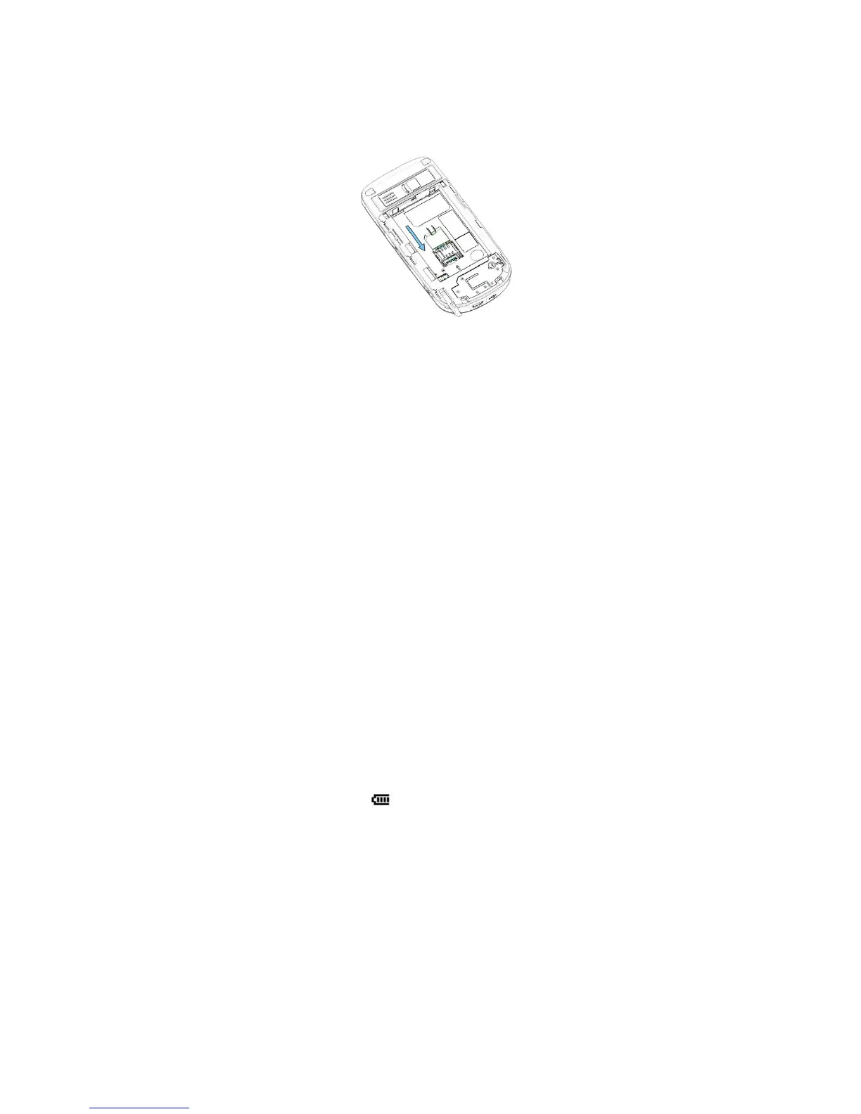 contacts facing down (the cutoff corner of the SIM card should match the cut-off