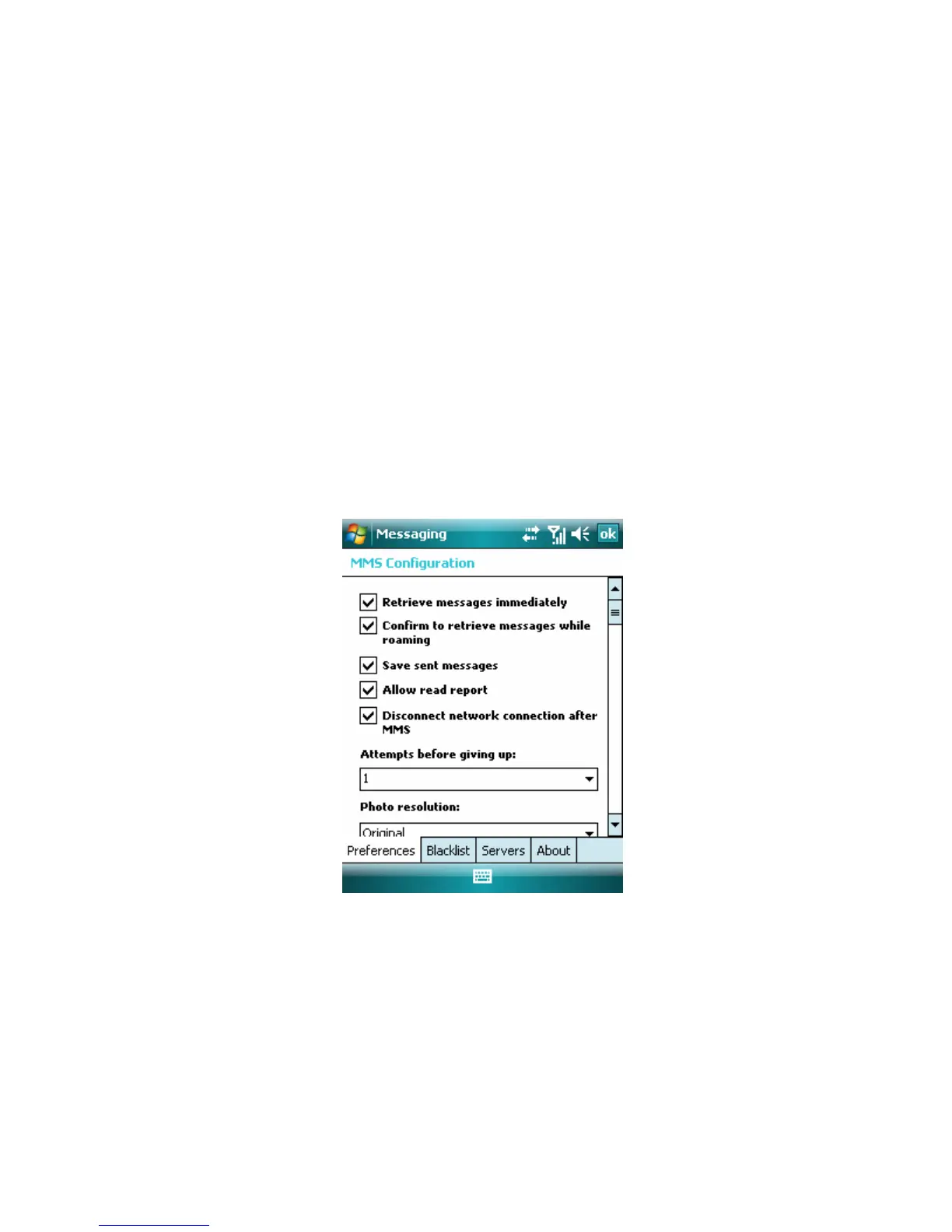 information. ( Tap Menu > Tools > Options > Accounts tab > MMS from MMS