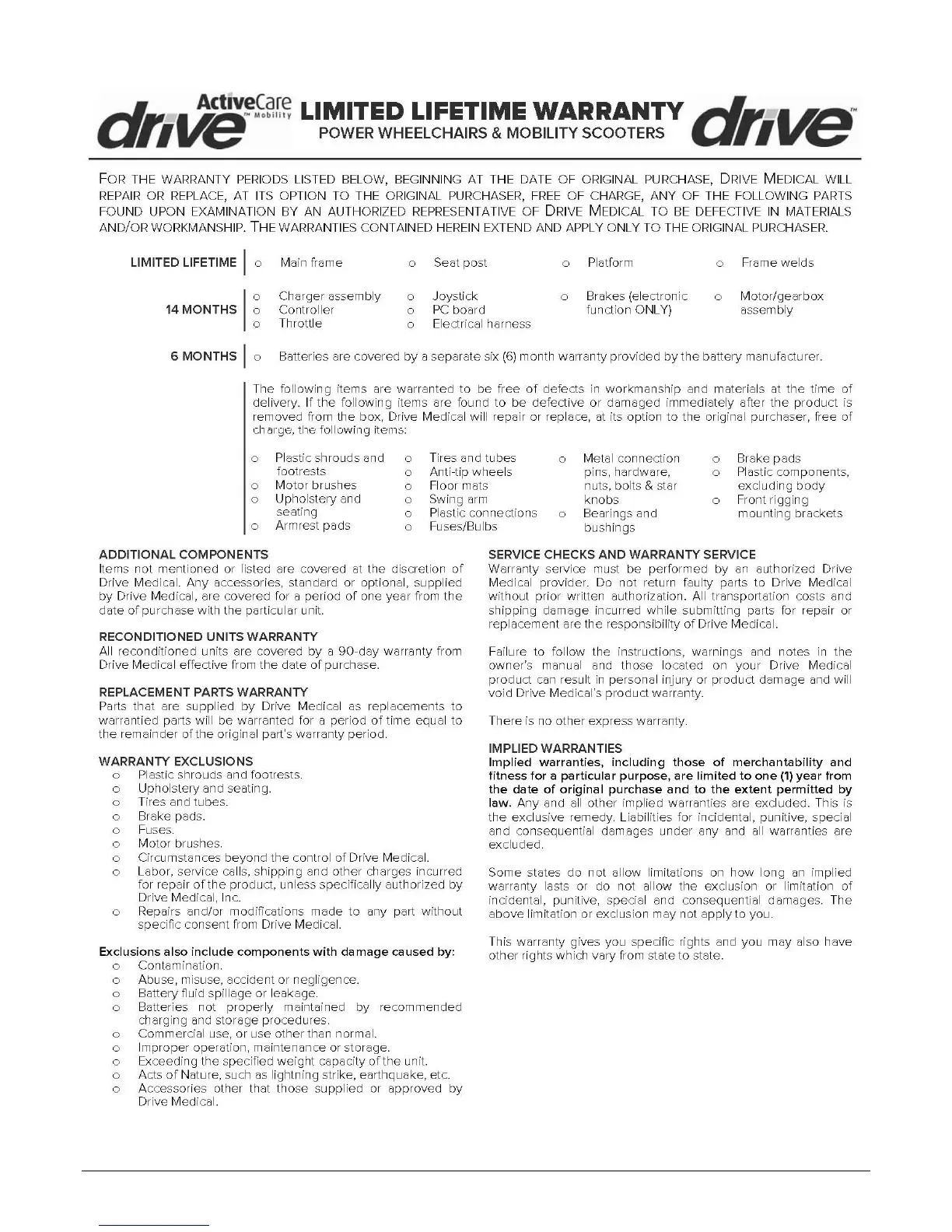 Drive Spitfire EX 1320 - 10 Limited Warranty