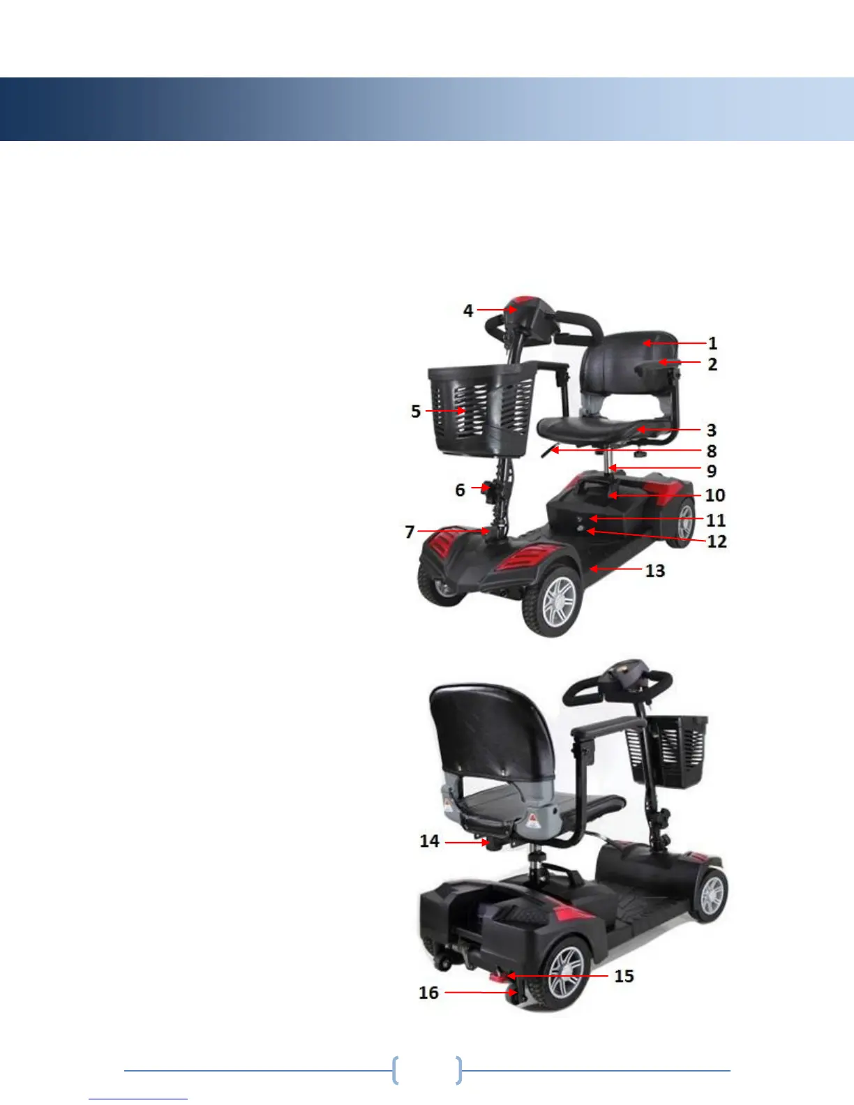 Please refer to the diagram below to identify your scooter parts. Familiarize yourself