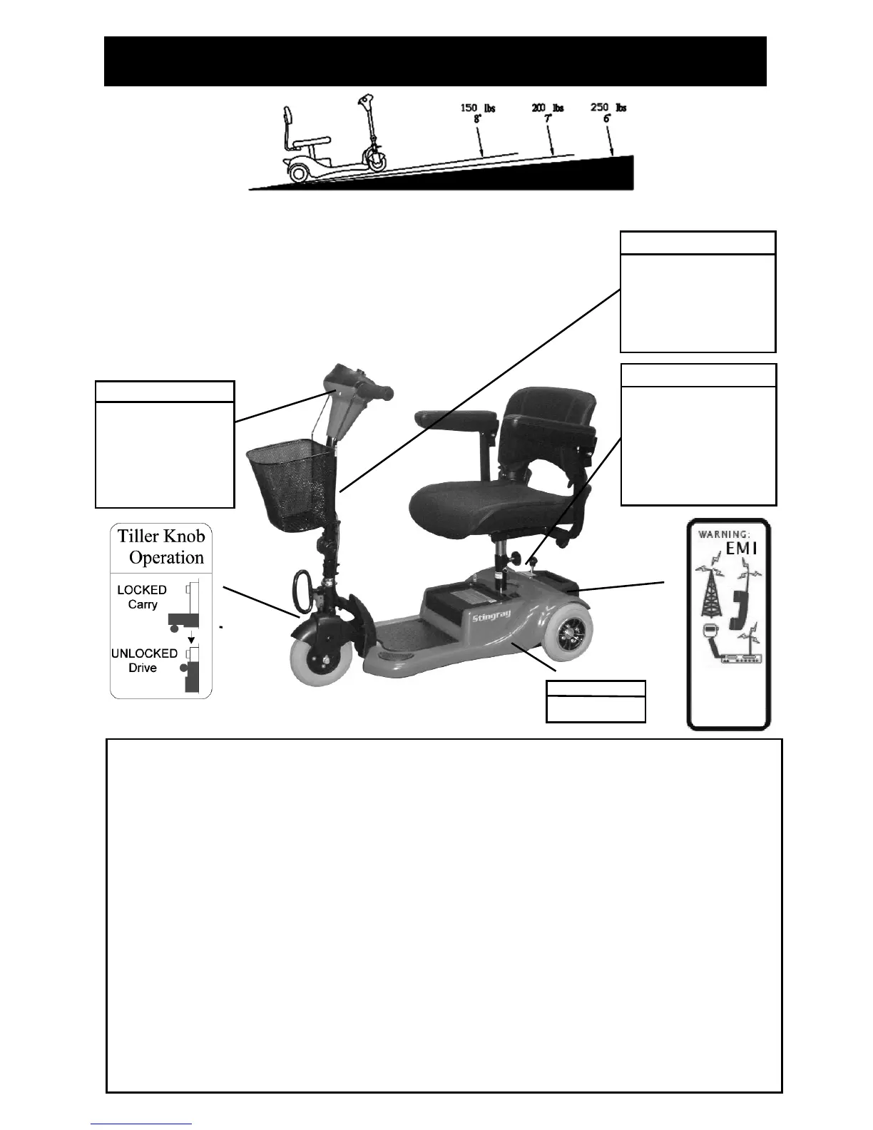cellular phones, can affect powered motorized scooters. Following the warning listed below should