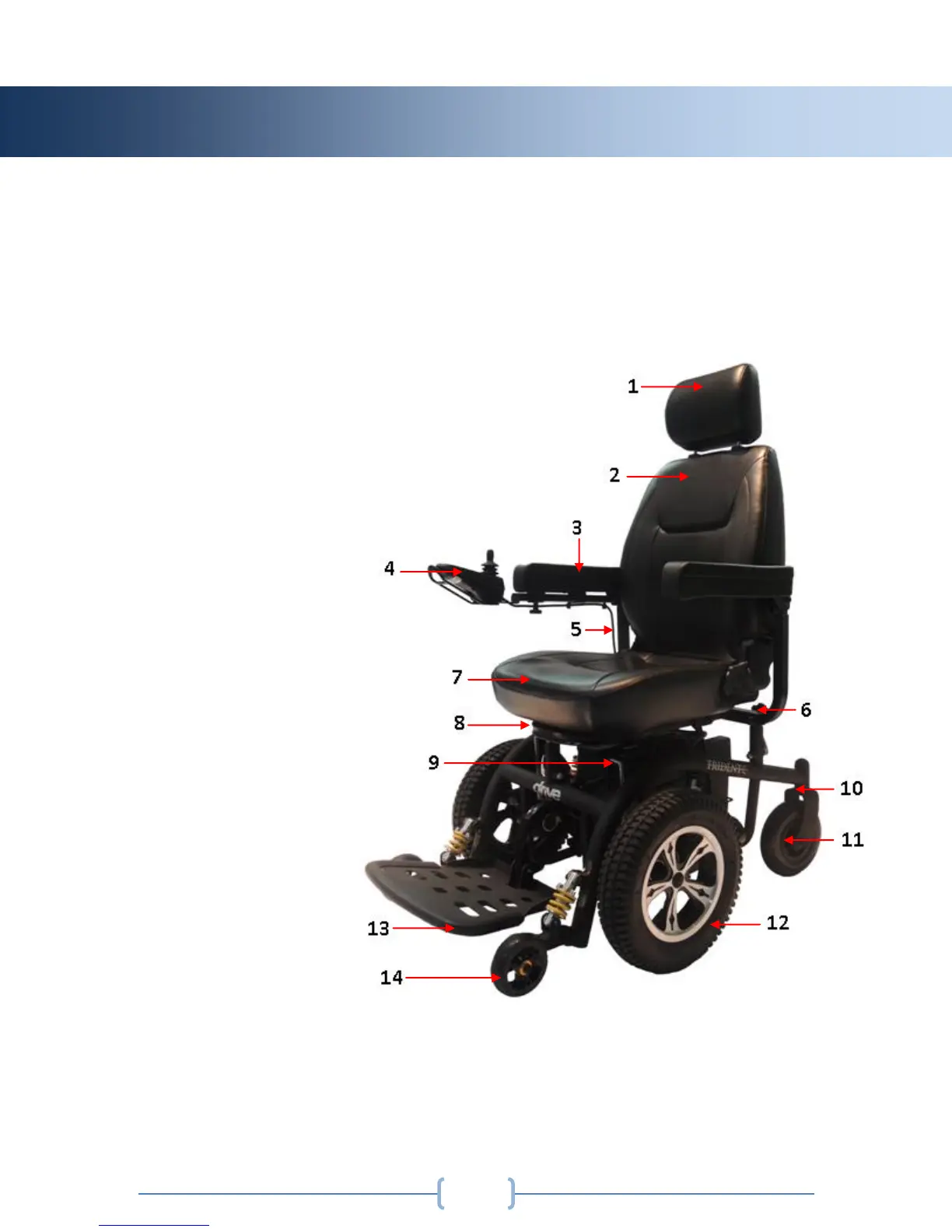 Please refer to the diagram below to identify your power wheelchair parts. Familiarize