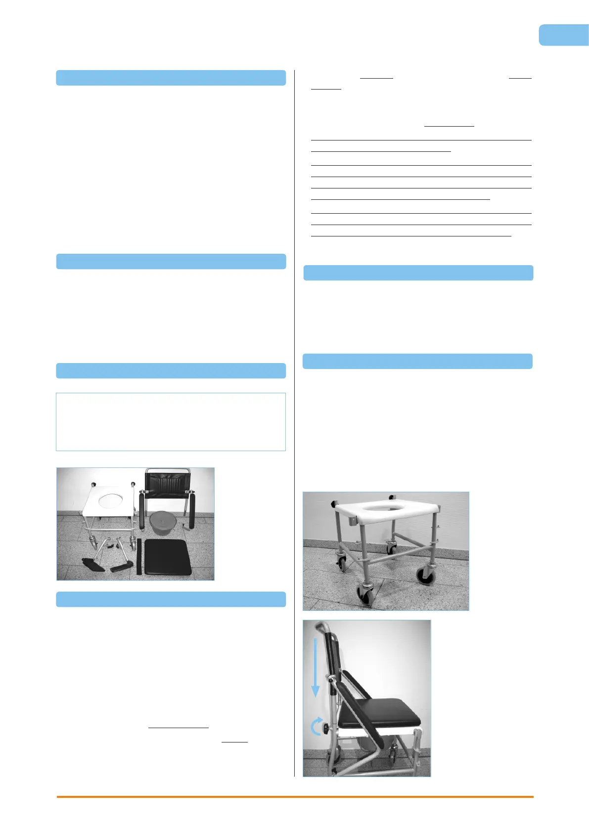 gefahrlose Nutzung des Toilettenrollstuhls und einer