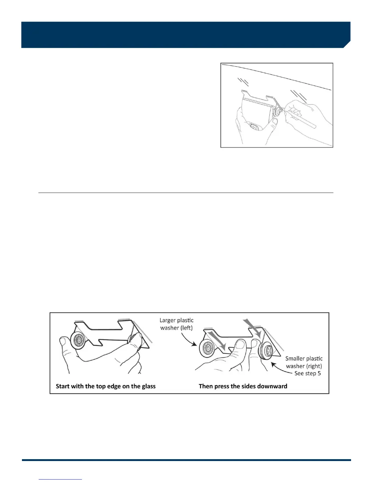 E) Press the bracket firmly against the windshield starting at the top and pressing the sides downward.
