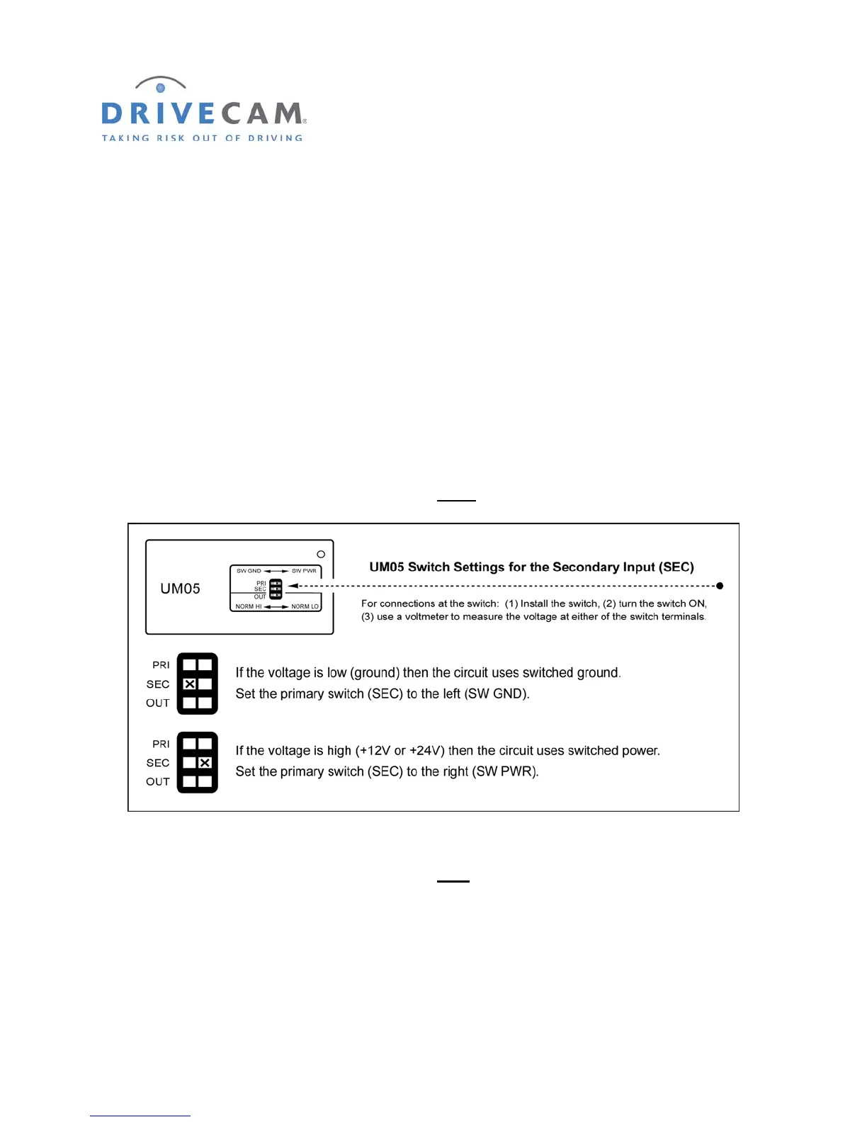 make the appropriate secondary (SEC) switch settings on the Universal Module (UM05).