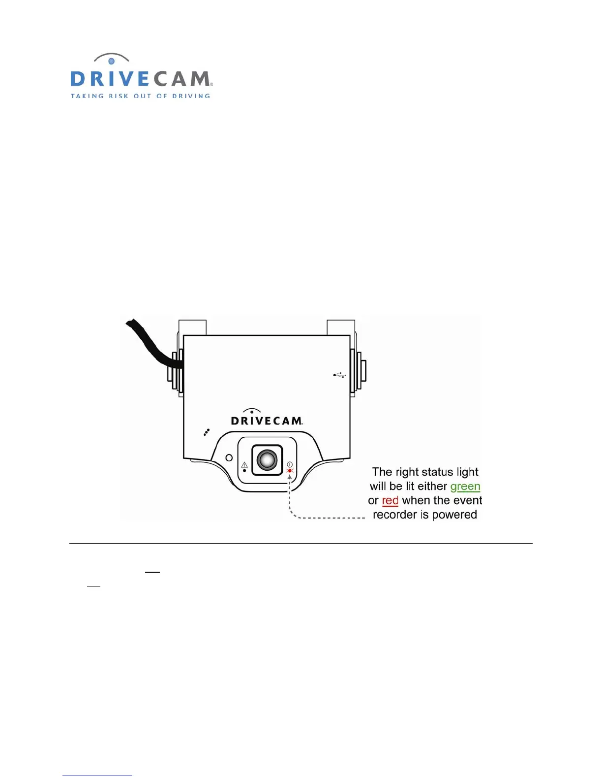 LED does not turn off or if it begins flashing (either red or green), please call DriveCam Technical