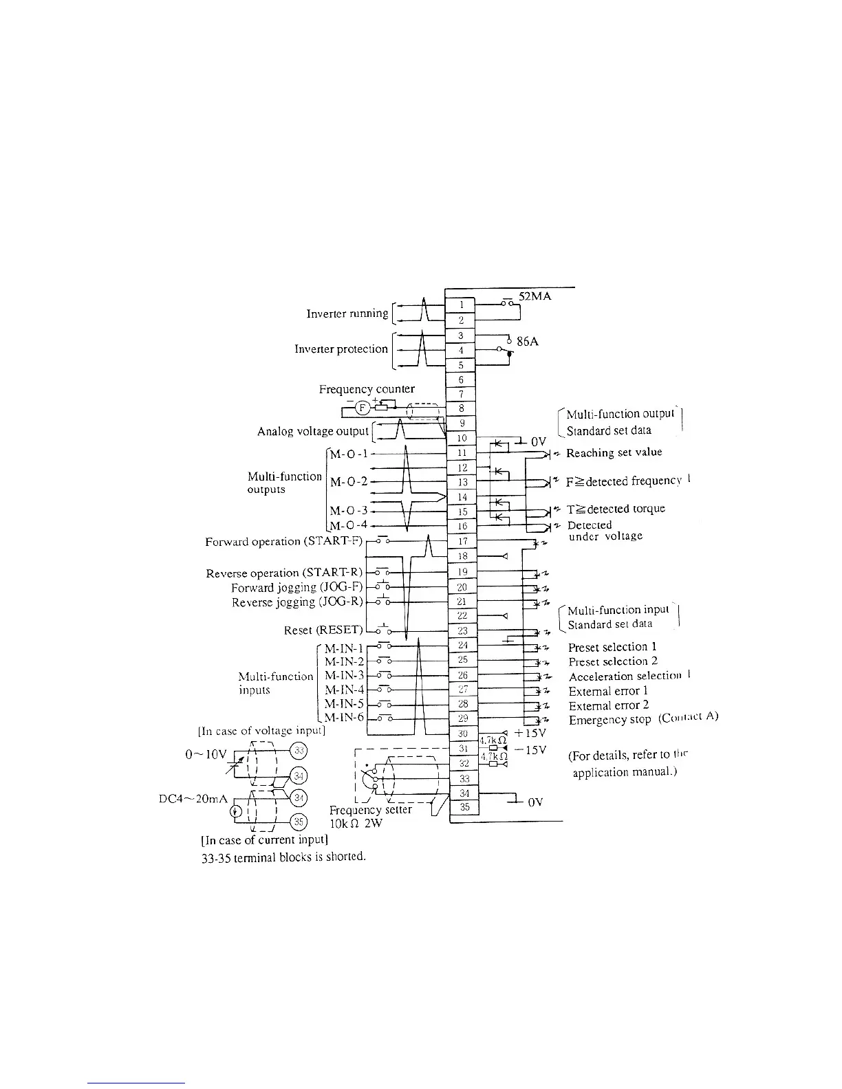 Terminals 10 and 34 carry 0V of the control circuit. Never connect these terminals to GND.