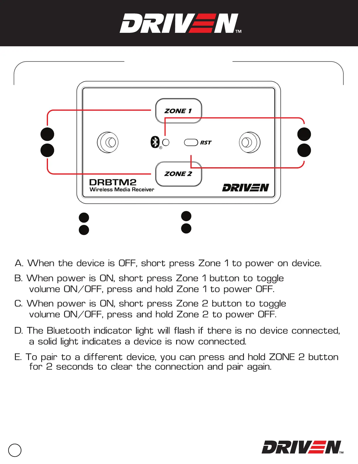 DRIVEN DRBTM2 - Control Legend and Operation; Button and Indicator Functions
