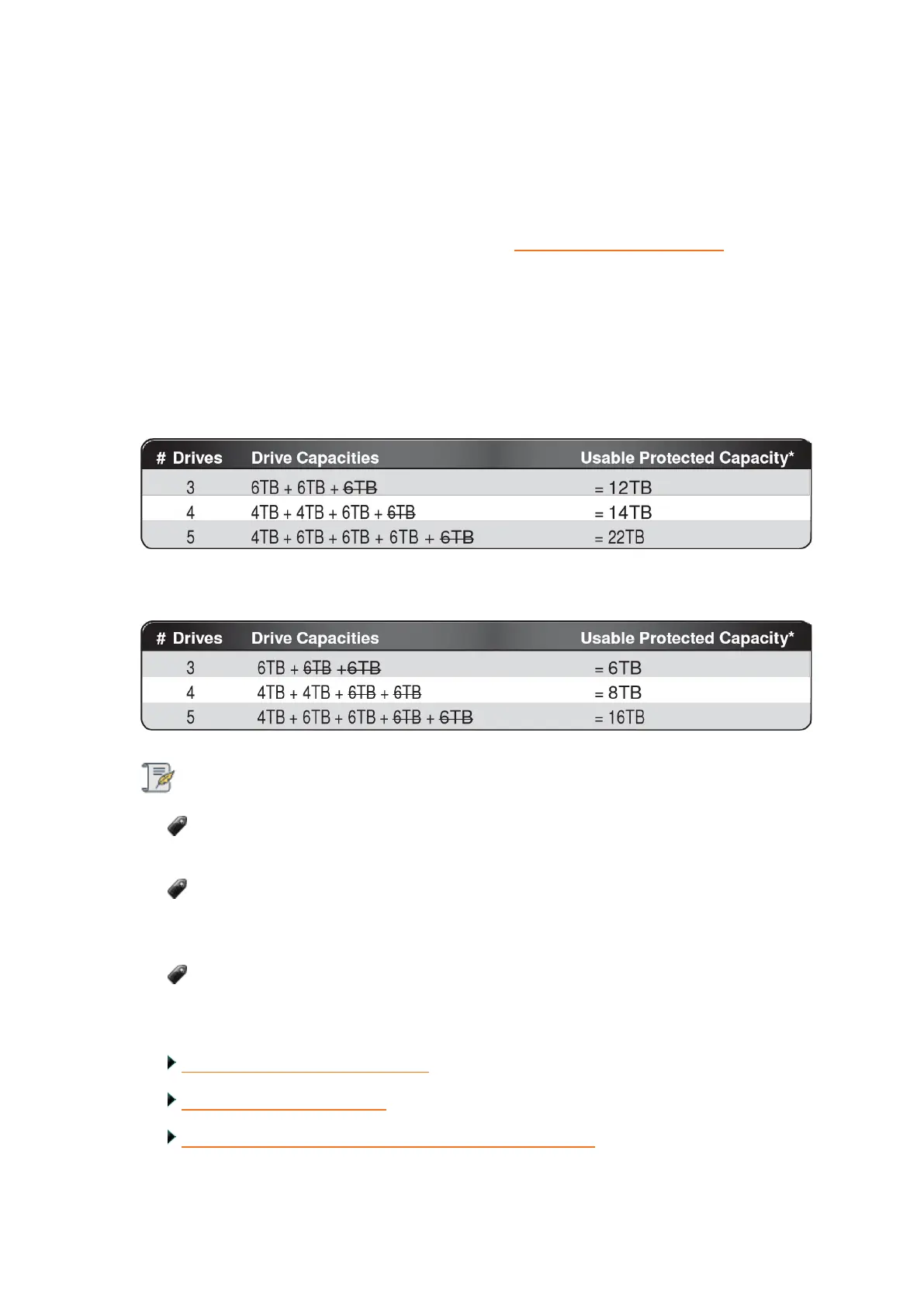 A shortcut to estimating the capacity available for your data is to omit the largest drive