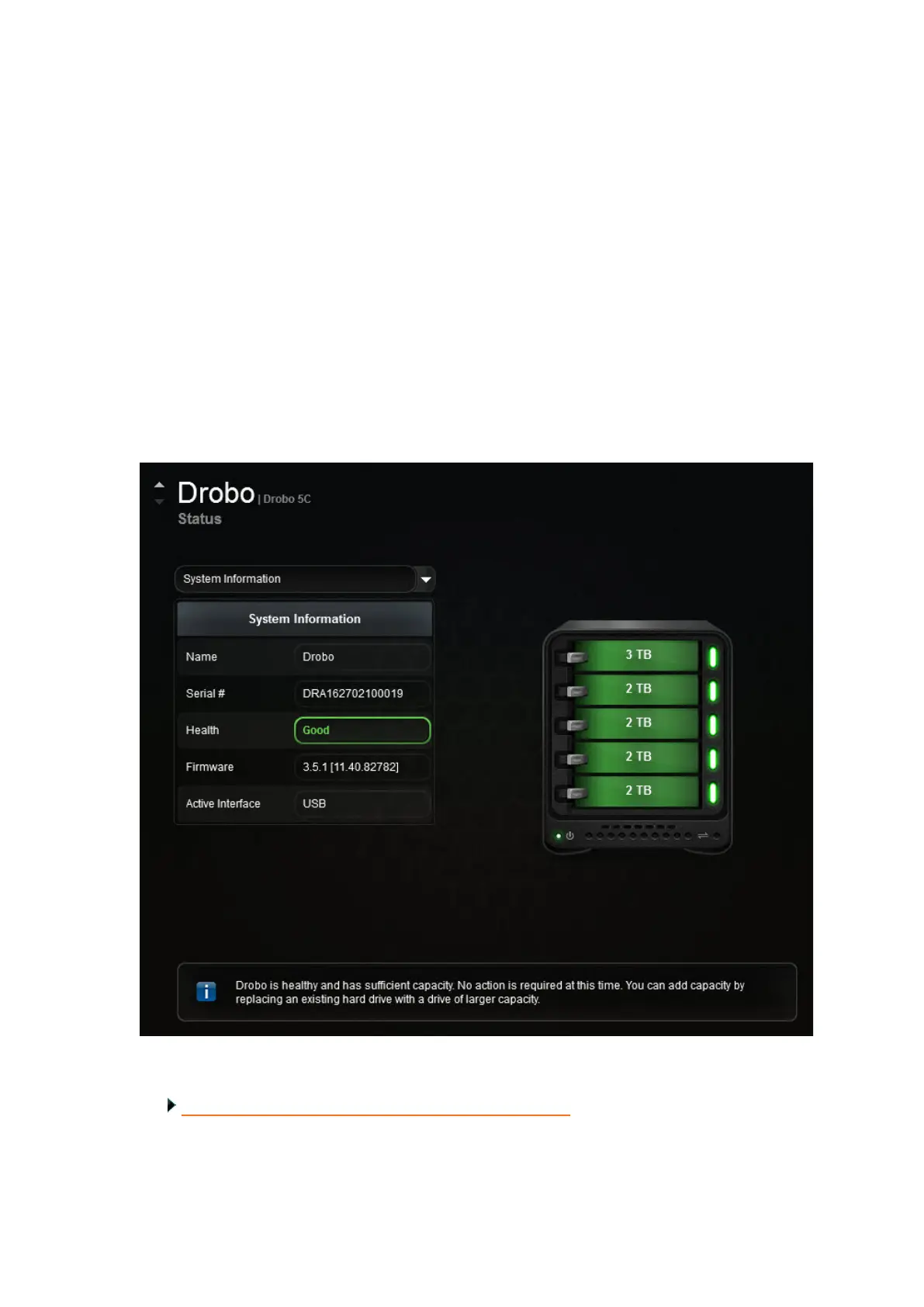 You can check for your Drobo 5C’s firmware version on the Status page in Drobo