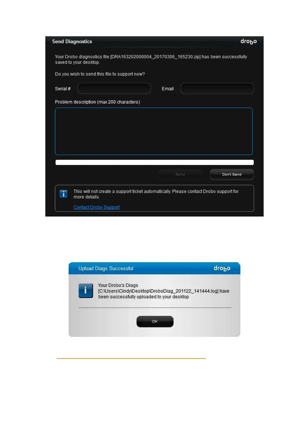 If you cannot generate a diagnostics file because your Drobo device does not mount,