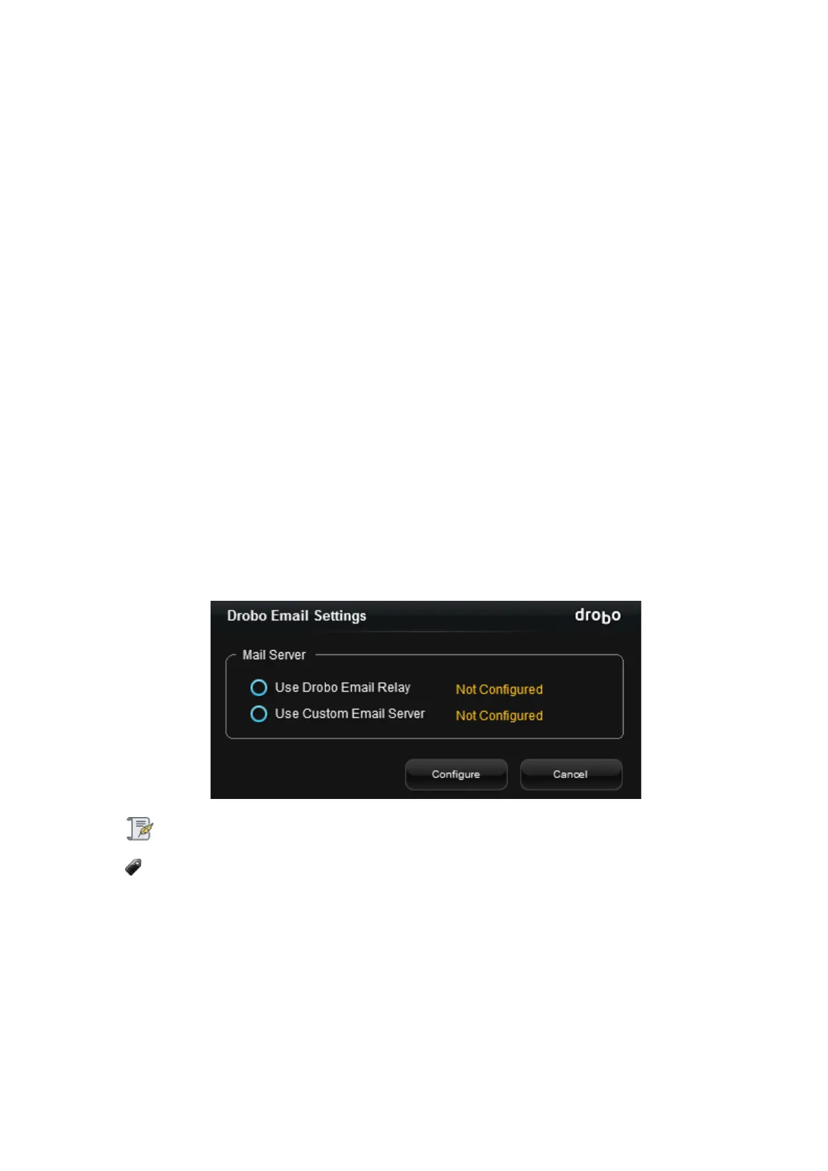 3. Drobo email settings can be configured using one of the two options, Use Drobo
