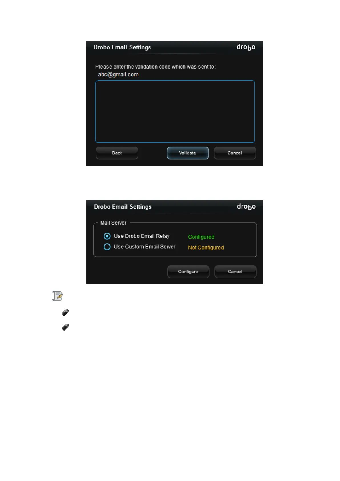 It is not possible to configure the Drobo Email Relay Server using the same email-