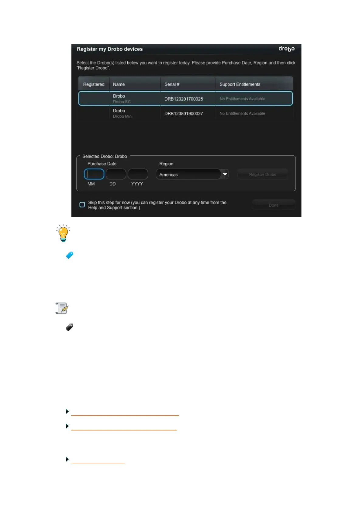 6. Click the Register Drobo button.