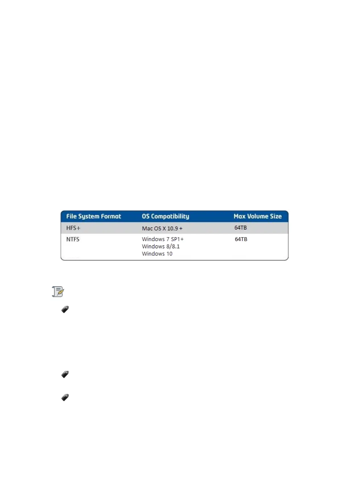 Figure 1: Table of file system formats and maximum volume sizes