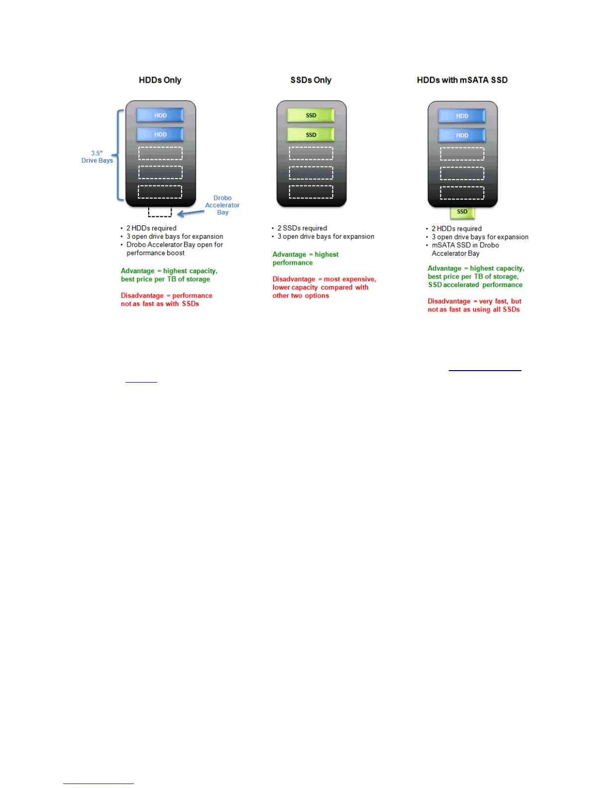 If an incompatible SSD is inserted into the Drobo device, the drive light will blink red,