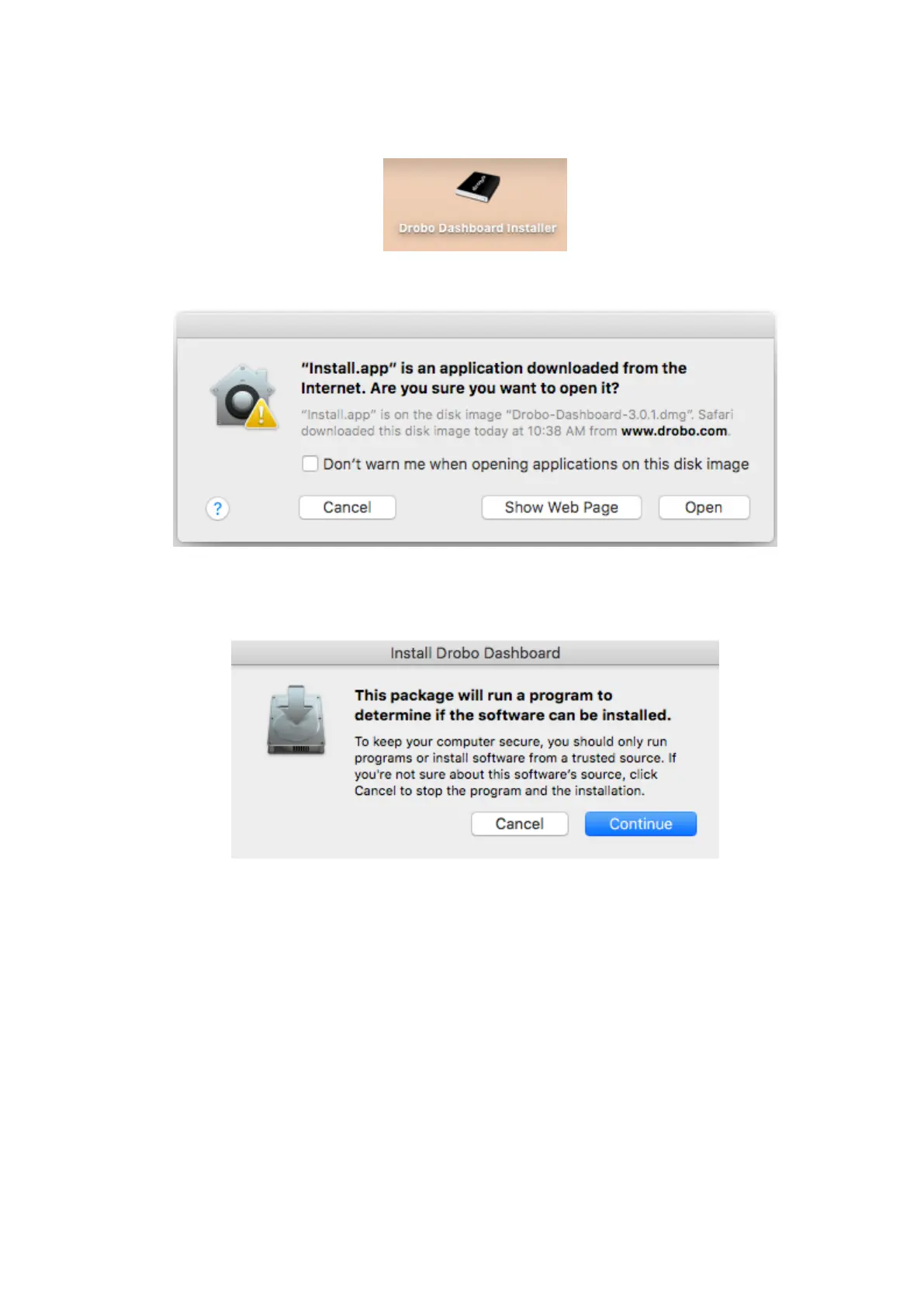 4. The Install Drobo Dashboard page will appear. Click Continue to proceed to the next