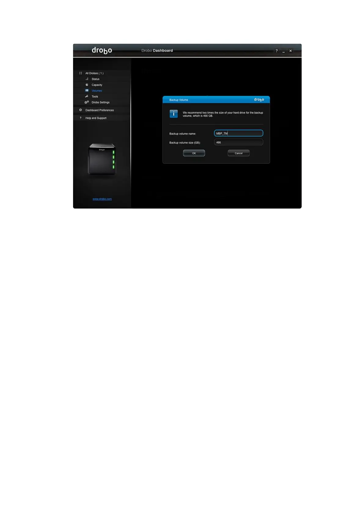 the Drobo 5D3, because it must restart. When you are ready, click Yes to continue.