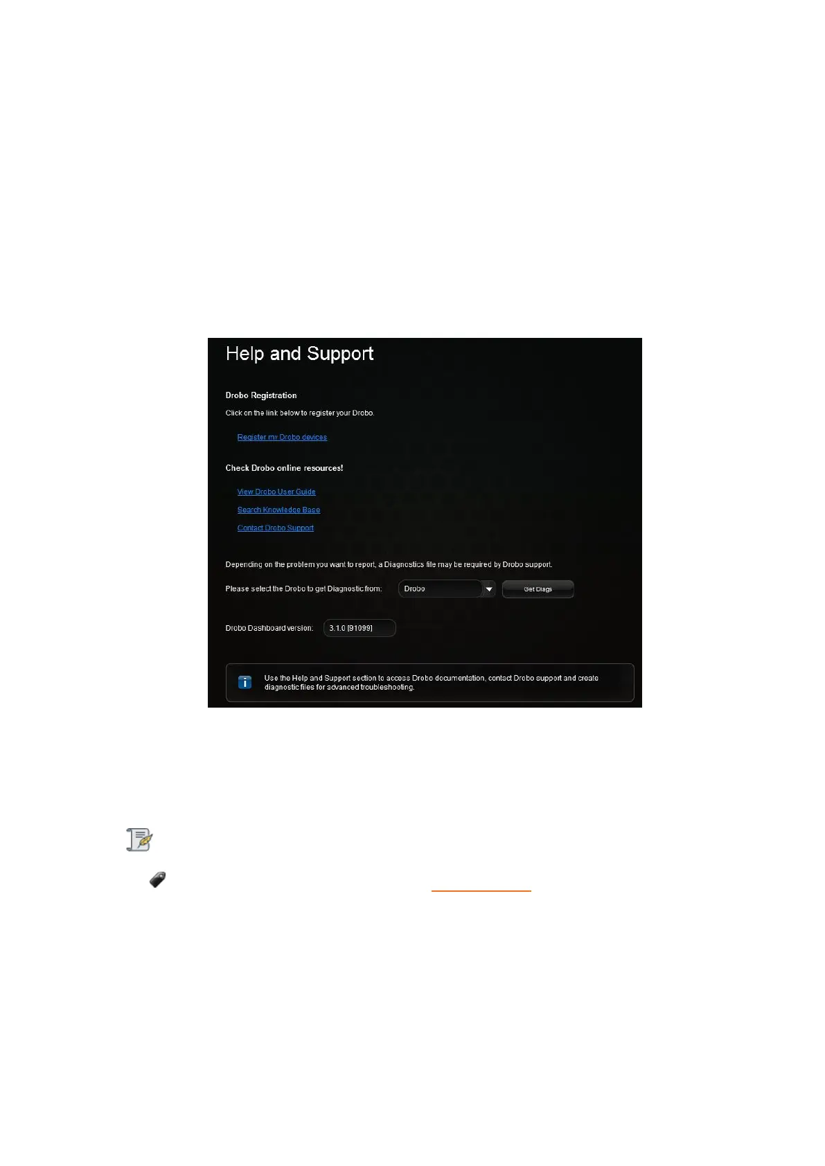 1. From the Drobo Dashboard, click the Help and Support option on the Navigation