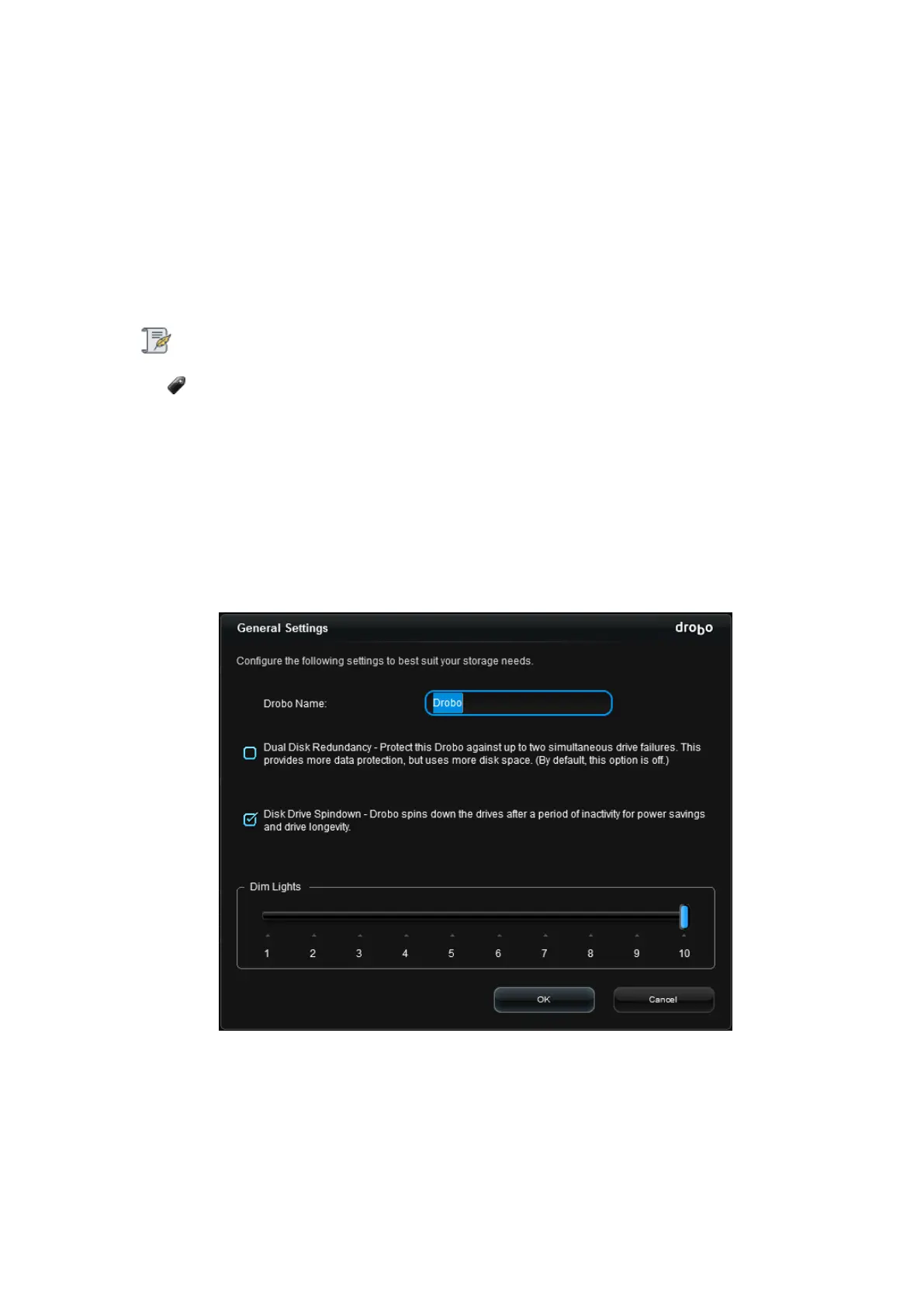 2. Click the Drobo Settings option on the Navigation menu, and click General. The