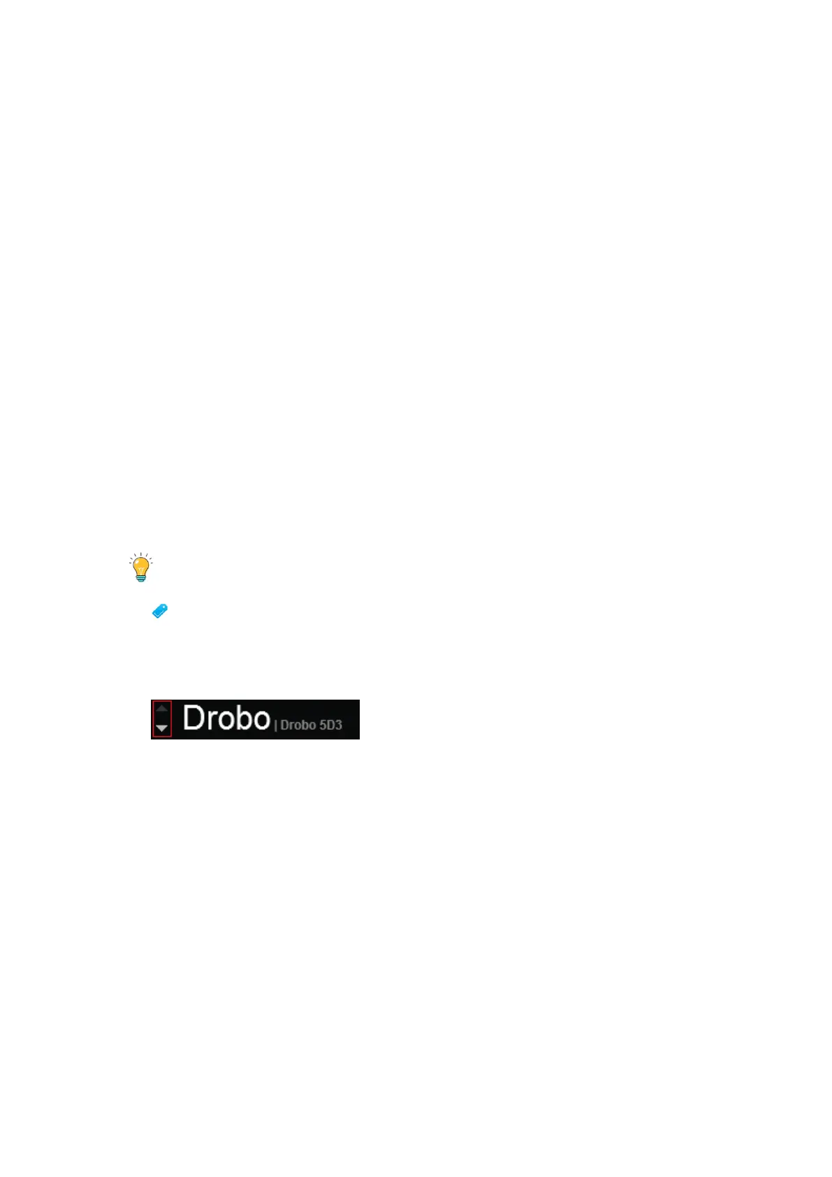 can click the up or down arrow key that displays to the left of the Drobo device