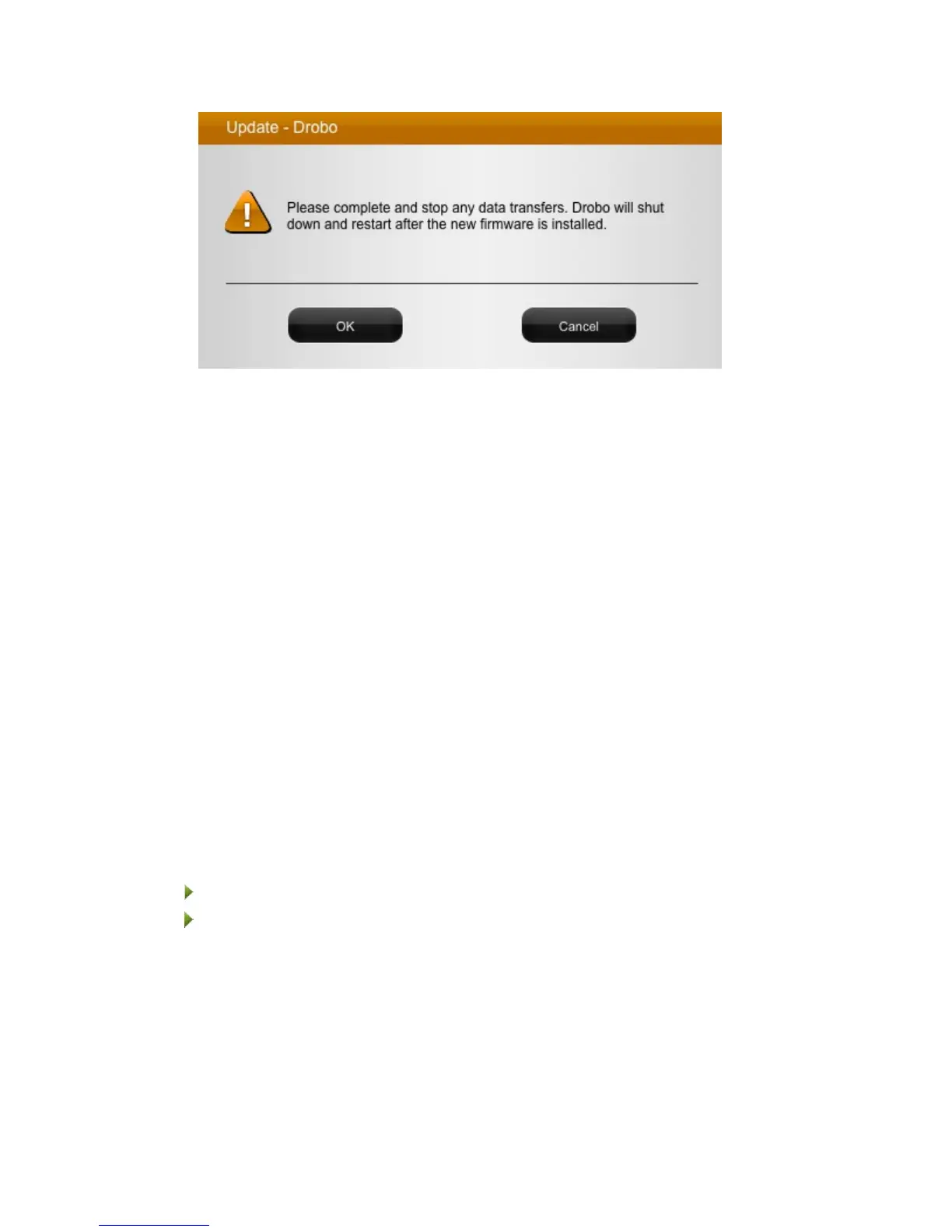 Drobo installs the firmware. When finished, a message opens, asking you to reboot your