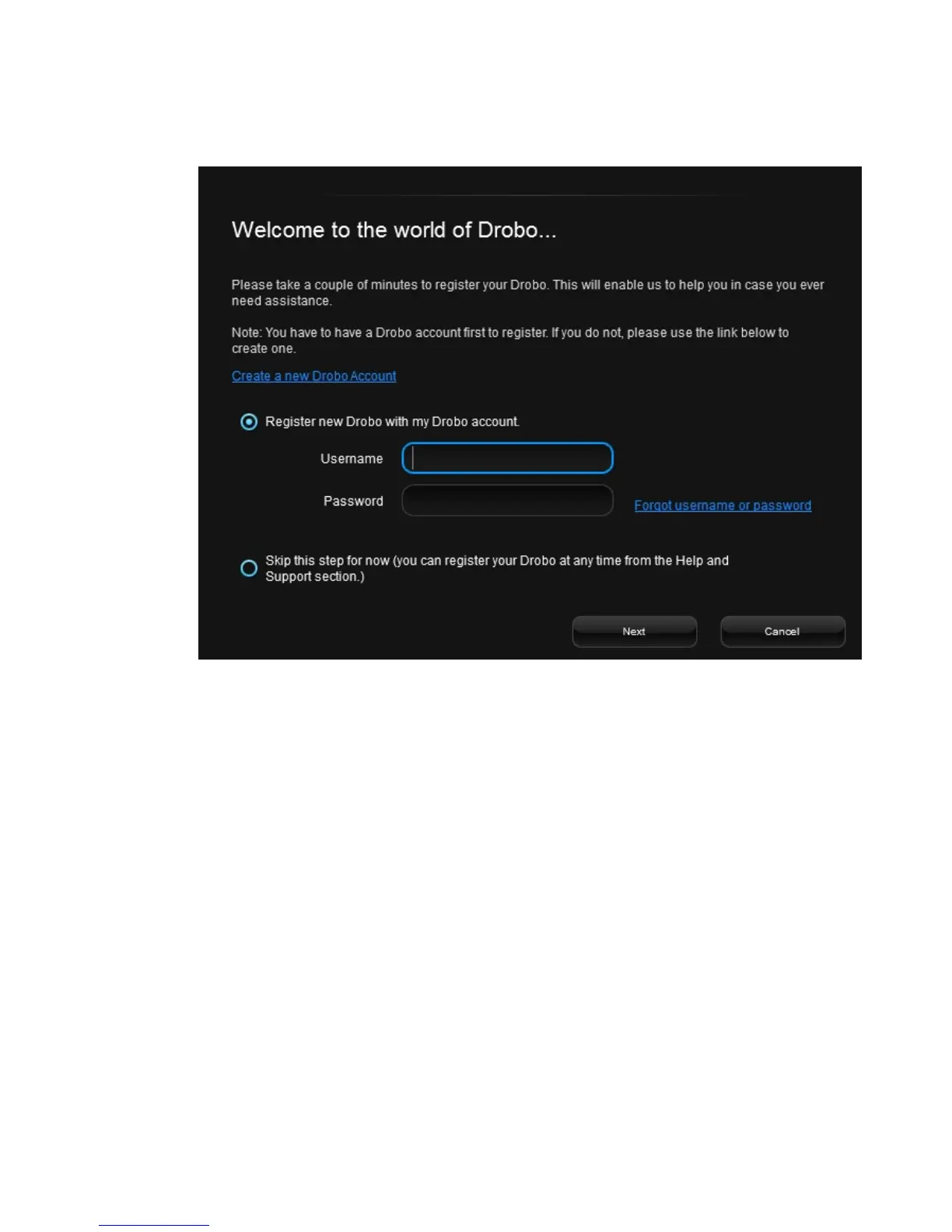 If you do not have a Drobo account, click the Create a new Drobo account link. A one-